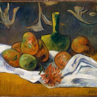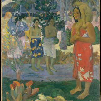 Paul Gauguin (1848-1903) was a French painter who was associated with the Post-Impressionist movement. He is best known for his paintings of the South Pacific, where he lived for several years and developed a style that combined elements of traditional Polynesian art with the techniques of European painting. Gauguin’s work is notable for its bold colors, flattened forms, and its use of symbolism to convey meaning.