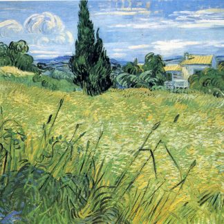 Green Wheat Field with Cypress