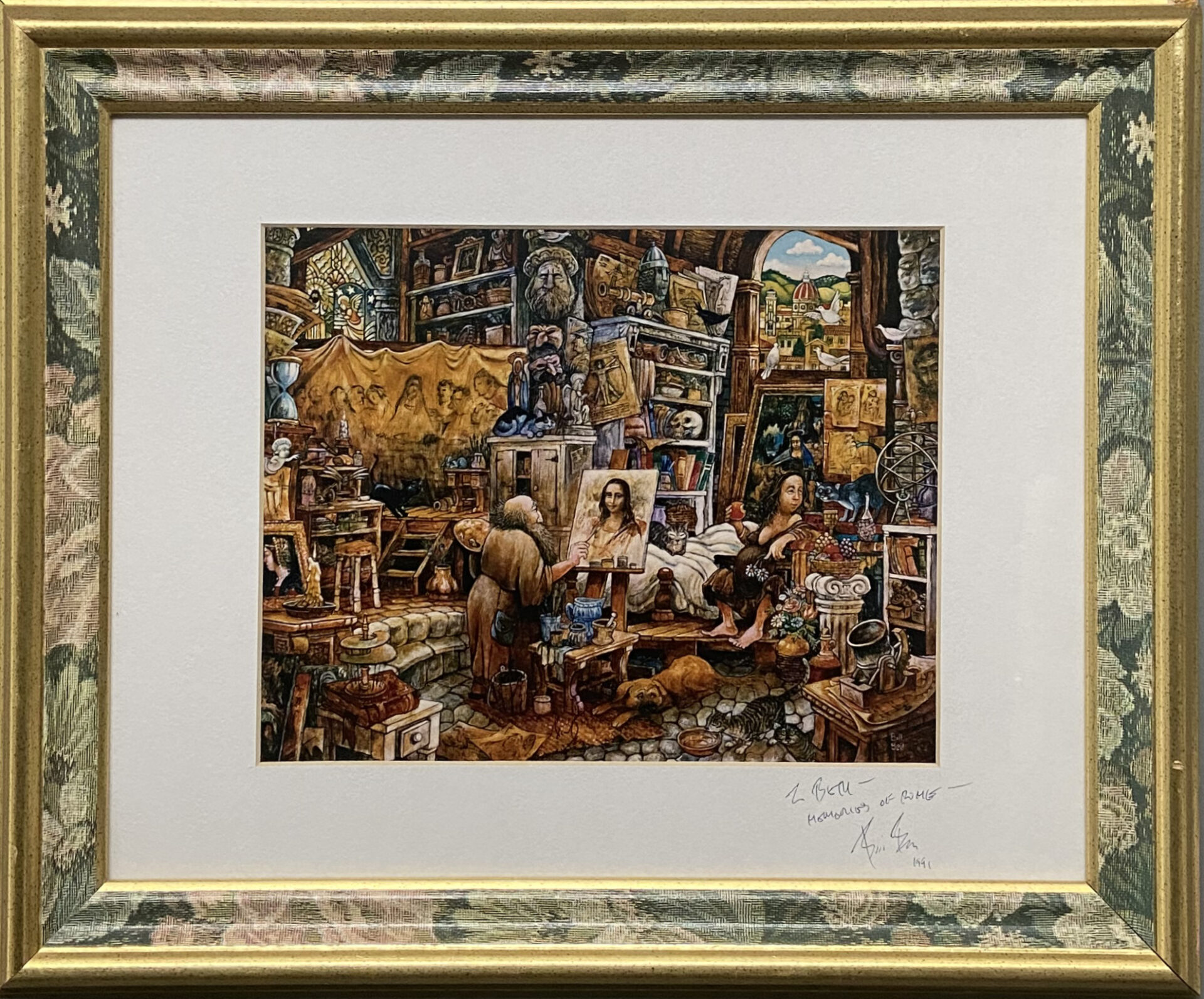 A native of Philadelphia, Bill Bell is a completely self-taught artist who took up painting full-time in 1982 after a successful career as a musician and record company executive. For Bill, painting is a compulsion; “it is also my fun, my therapy, and my challenge.” Working in brilliant acrylics, he creates richly detailed and visually complex scenes based on memories and impressions of people, pets, events, and dreams that have shaped his life.