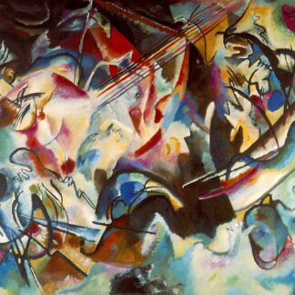 The audience was quite shocked by the transition from the apocalyptic emotion of Composition VII to the geometric rhythm of Composition VIII. “Composition VIII” was painted ten years later in 1923. It is a logical development of the creative genius of the painter and to a certain extent it reflects the influence of Suprematism and Constructivism assimilated by Kandinsky in Russia and in the Bauhaus.