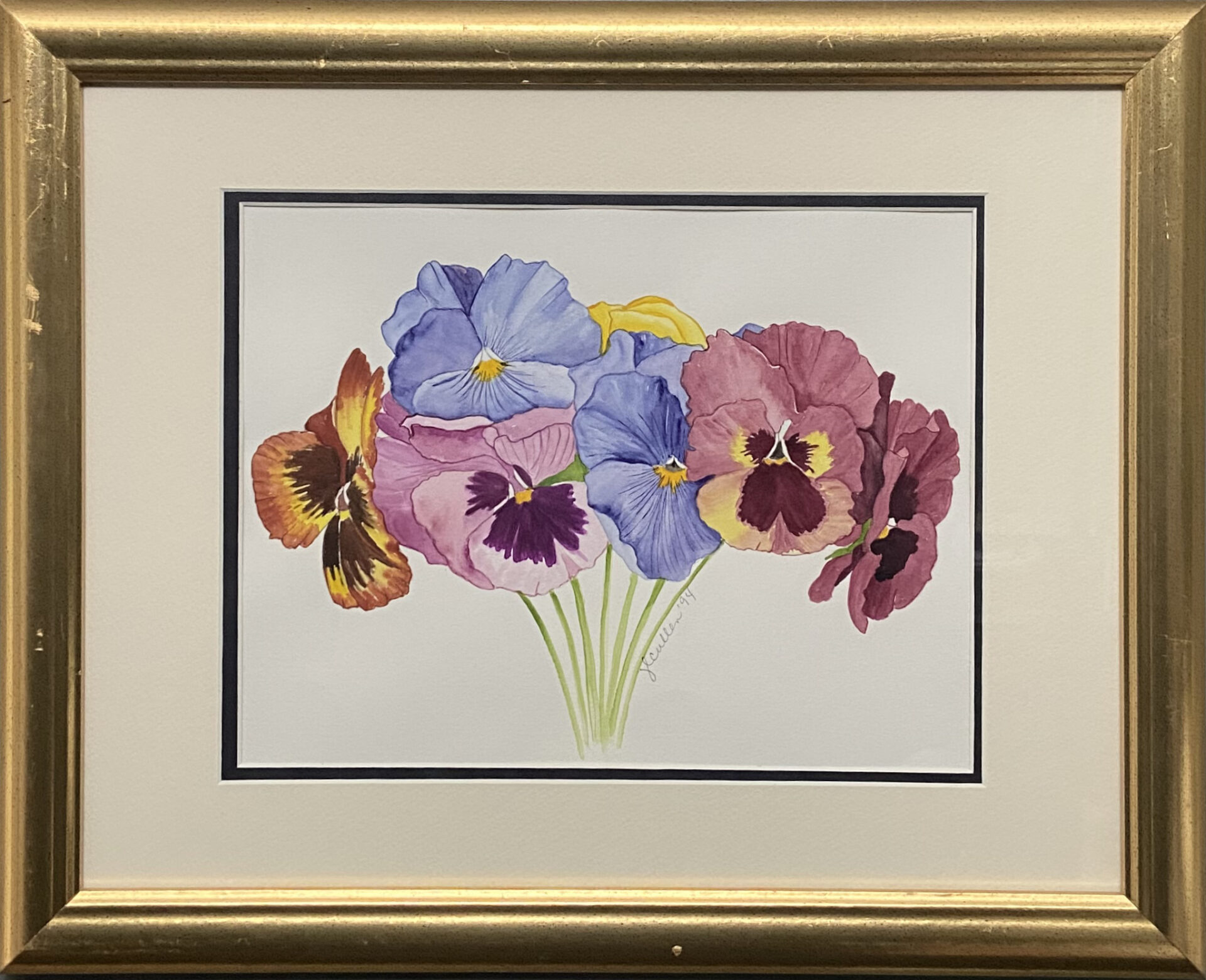 Cullen – Pencil Signed Original Floral Watercolor Painting on Paper. Some frame imperfections noted.
