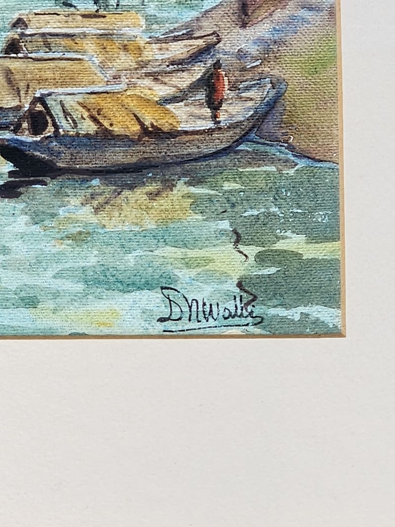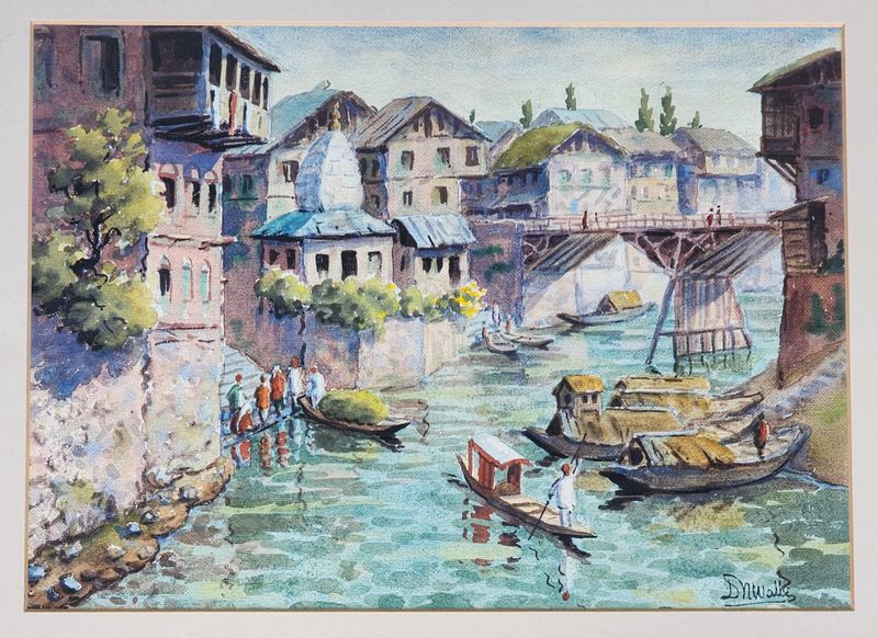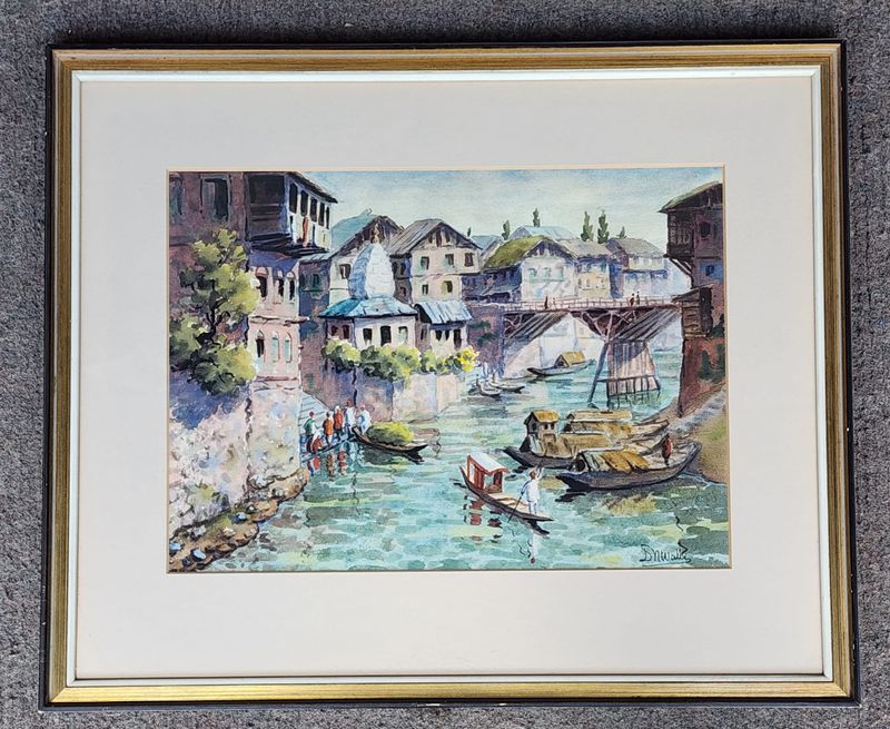 Dina Nath Walli – Original Antique Signed Canal Scene Watercolor.