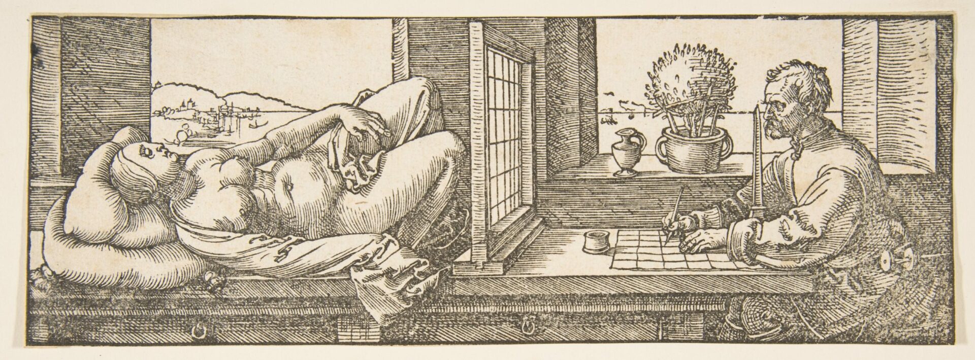 Draughtsman Making a Perspective Drawing of a Reclining Woman