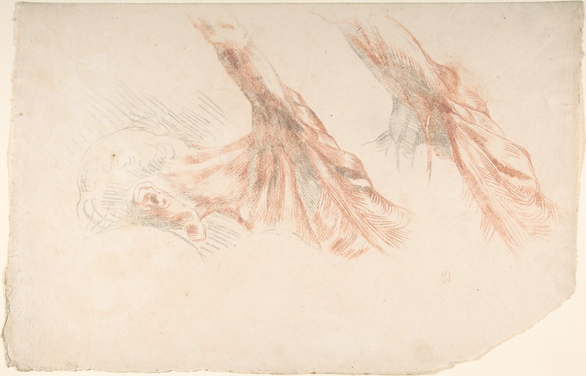 Ecorché: Two Studies of the Muscles of the Shoulder and of the Arm, Raised