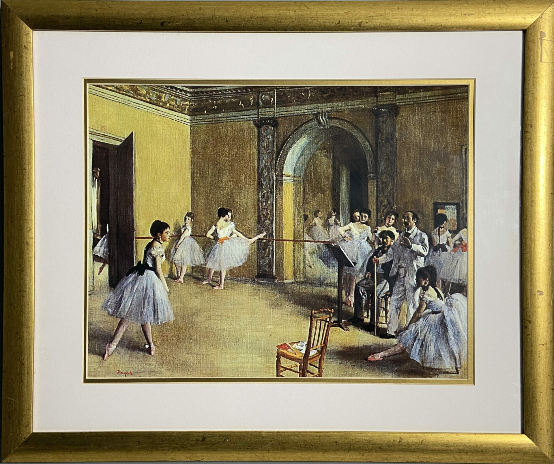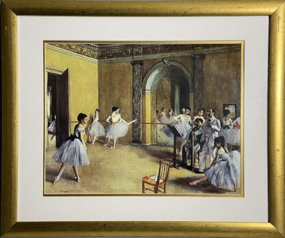 Edgar Degas – Beautiful Giclee print of “Dance Class at the Opera” in a distressed gold frame. Signed in print. Certificate of Authenticity included. Some frame imperfections noted.