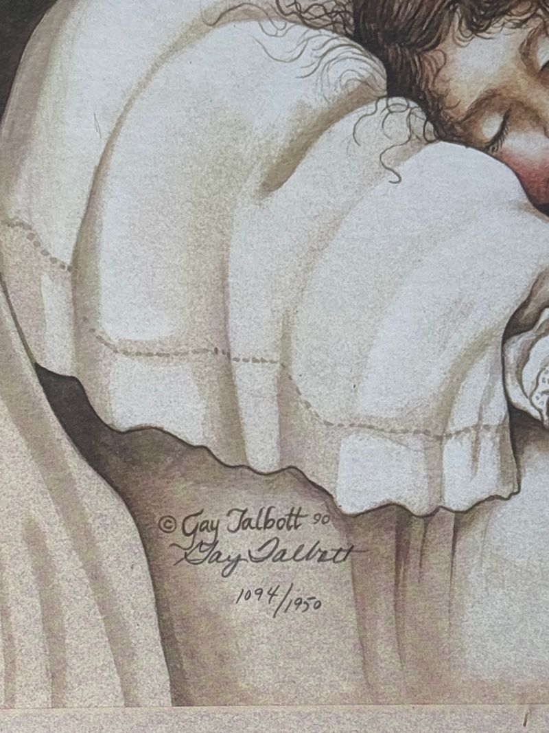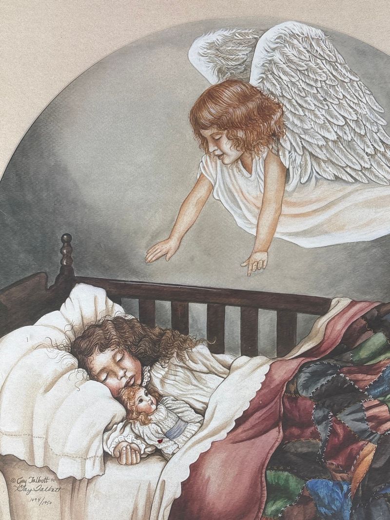 Gay Talbott 1990 Pencil Signed Angel Lady Over Child