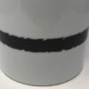 This elegant and understated umbrella stand was designed by Cuno Fischer for the esteemed maker Rosenthal (Studio Line), circa 1980. The piece offers an austere cylindrical silhouette with alternating solid grisaille bands (black, white and gray) with agitated edges. Two of the bands offer abstracted geometric hieroglyphic inscriptions. With its monochromatic palate and clean lines, this umbrella is as versatile as it is aesthetically appealing, blending perfectly with any style of interior from Classic Mid-Century Modern to contemporary.