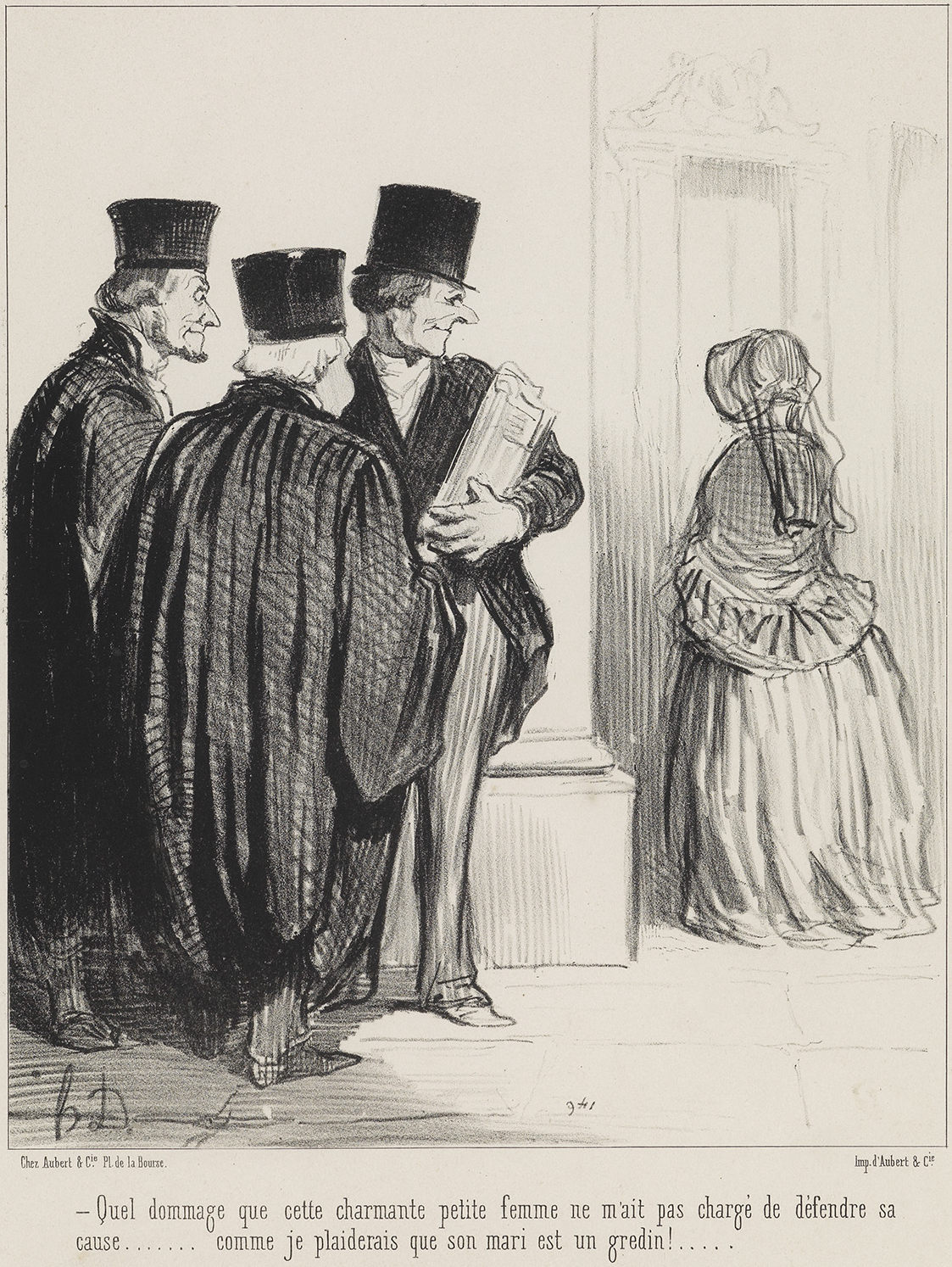 Honoré-Victorin Daumier (February 26, 1808 – February 10 or 11, 1879) was a French painter, sculptor, and printmaker, whose many works offer commentary on the social and political life in France, from the Revolution of 1830 to the fall of the second Napoleonic Empire in 1870. He earned a living producing caricatures and cartoons in newspapers and periodicals such as La Caricature and Le Charivari, for which he became well known in his lifetime and is still remembered today. He was a republican democrat (working class liberal), who satirized and lampooned the monarchy, politicians, the judiciary, lawyers, the bourgeoisie, as well as his countrymen and human nature in general.