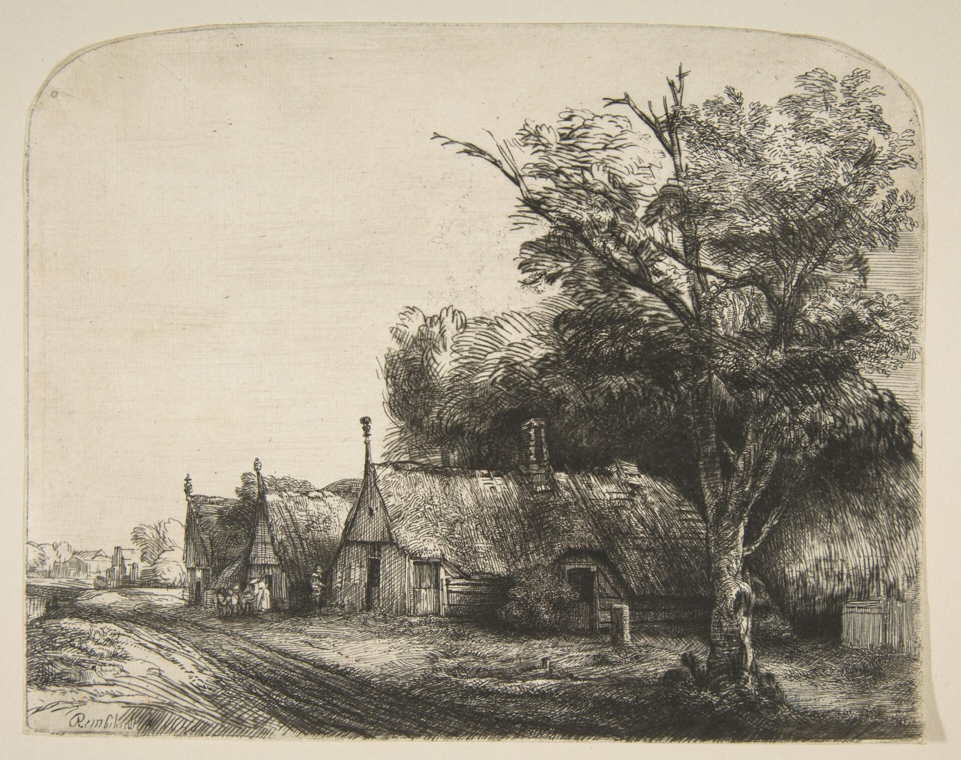 Landscape with Three Gabled Cottages Beside a Road