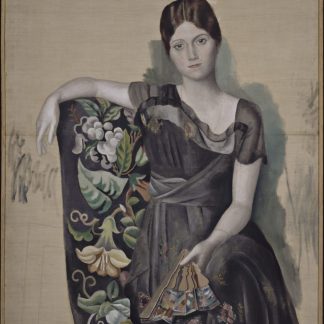 Each figure is depicted in a disconcerting confrontational manner and none is conventionally feminine. The women appear slightly menacing and are rendered with angular and disjointed body shapes. The figure on the left exhibits facial features and dress of Egyptian or southern Asian style. The two adjacent figures are shown in the Iberian style of Picasso’s native Spain, while the two on the right are shown with African mask-like features. The ethnic primitivism evoked in these masks, according to Picasso, moved him to “liberate an utterly original artistic style of compelling, even savage force.”