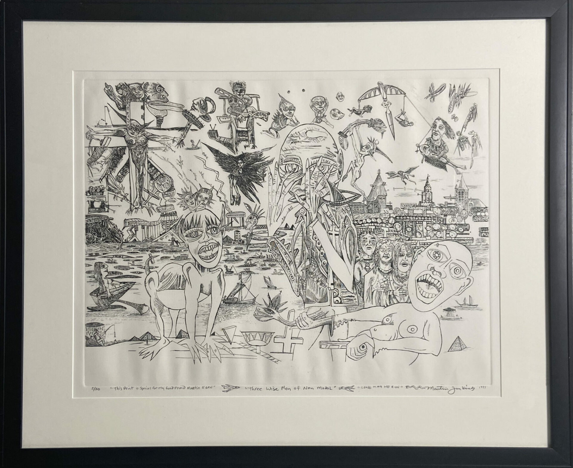 Born 1957 in Washington D.C. Martin Jenkins has spent the last 45 years, and plus, creating a variety of conceptually themed pieces utilizing art in multiple mediums. Martin studied art at George Mason University and then at the University of New Orleans where he received his BFA in 1980.  He has put on many one-man art shows as well as collaborations with other artists. His images abound with phantasmagorical mythologies and esoteric fringe tongue in sheep concepts. Although he does not always practice it his philosophy is that 21st century artists should create using an open approach while exploring the many old and new techniques at their disposal.