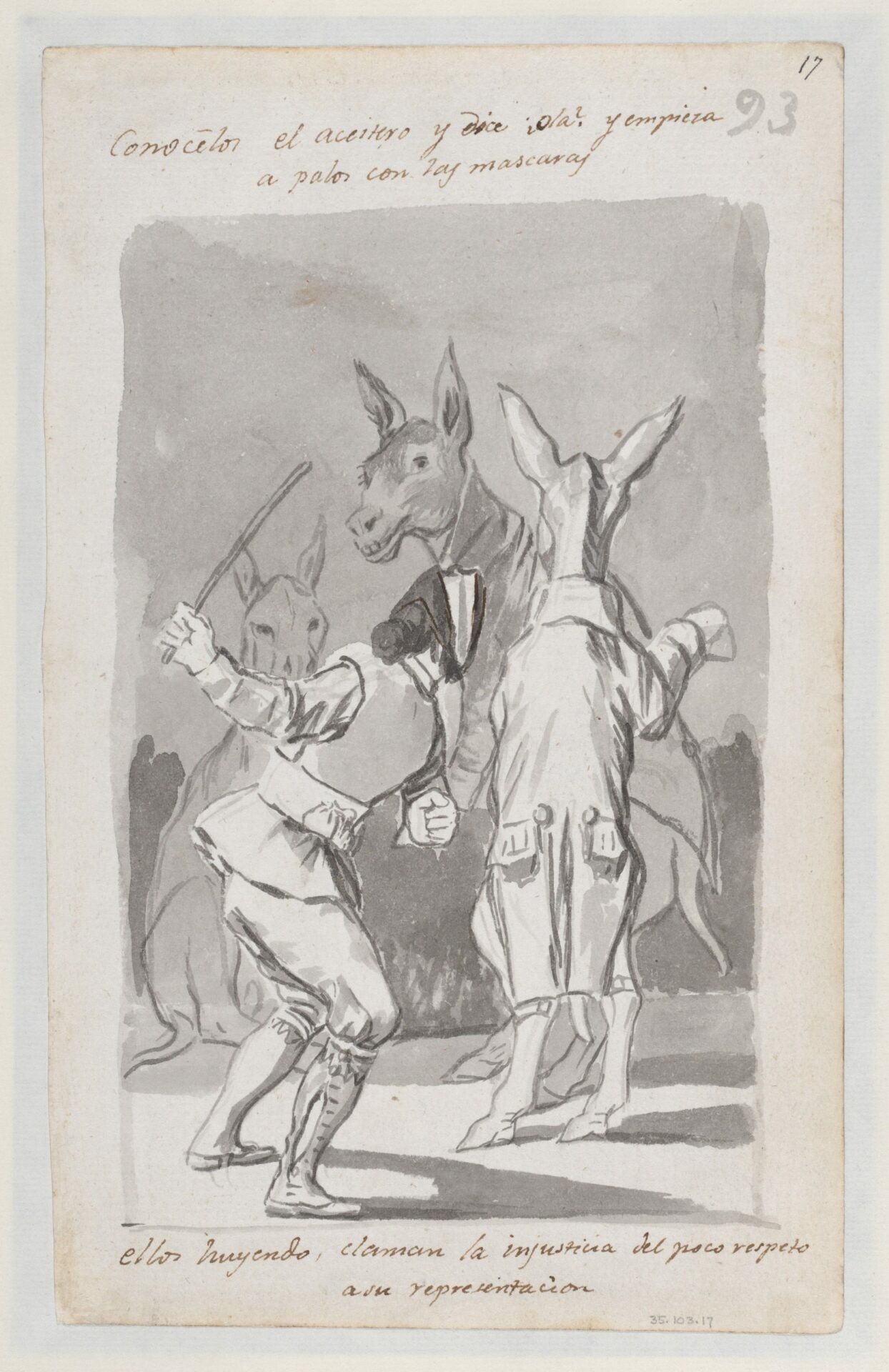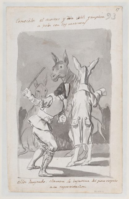 Masquerading asses being whipped; folio 93 (recto) from the Madrid Album ‘B’