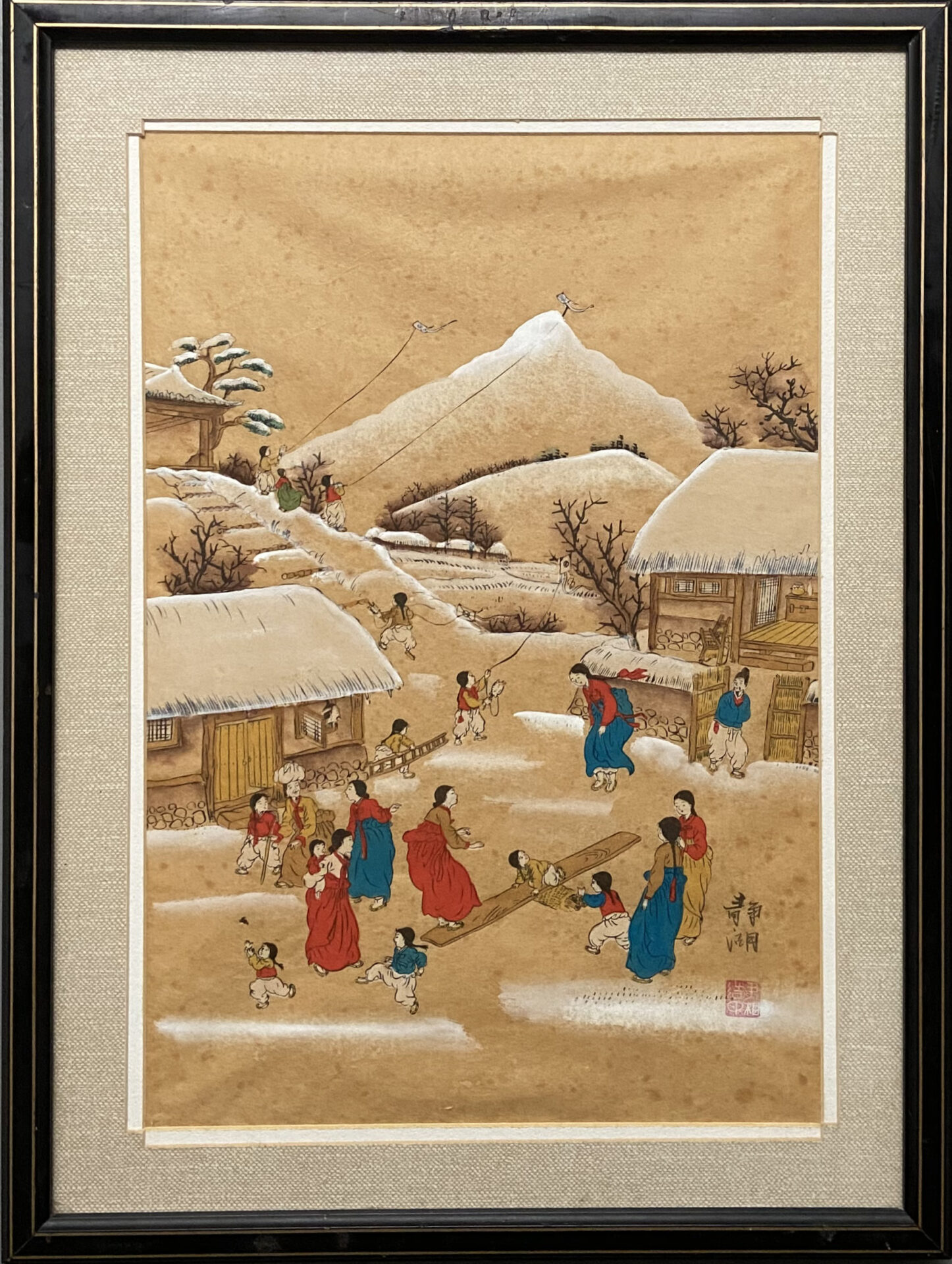 Original Asian Watercolor w/Artist Seal. Some frame imperfections noted.