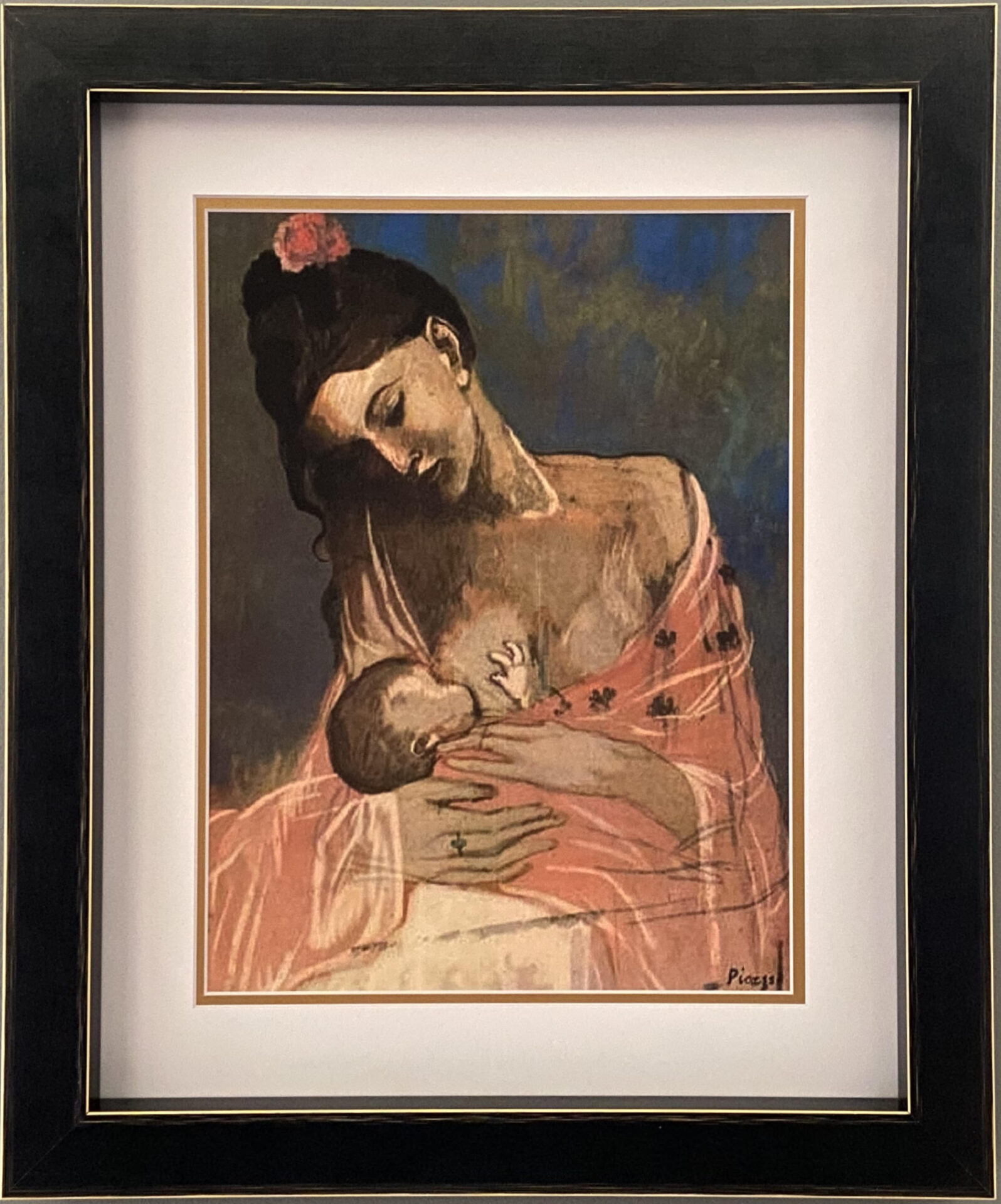 Pablo Picasso – 1905 Giclee print of “Maternité (mother And Child)” in a beautiful black and gold trimmed, deep set, custom frame. Signed in print. Certificate of Authenticity included.