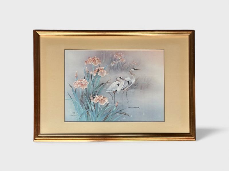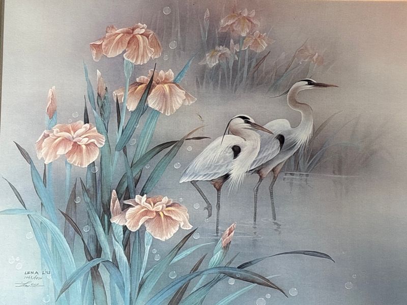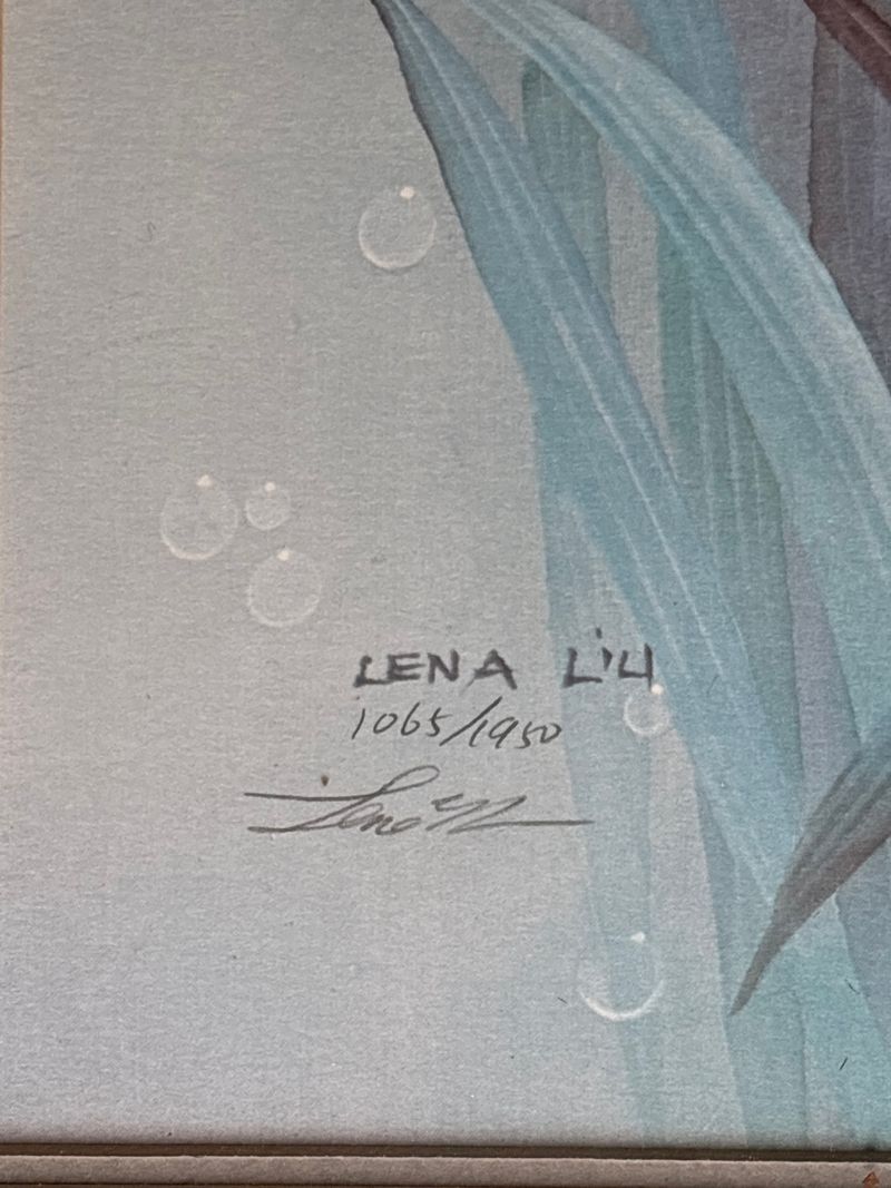 Pencil Signed Limited Edition Print of Cranes By Lena Liu.  Edition 1065/1950. Minor frame imperfections noted.