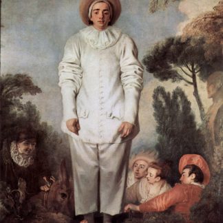 Completed in the later phase of Watteau’s career, Pierrot measures 184.5 by 149.5 cm, which makes up somewhat unusual case in the artist’s body of work. The painting depicts a number of actors portraying commedia dell’arte masks, with one as the titular character set in the foreground.