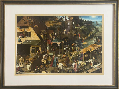 Netherlandish Proverbs (also called The Blue Cloak or The Topsy Turvy World) is a 1559 oil-on-oak-panel painting by Pieter Bruegel the Elder which depicts a land populated with literal renditions of Flemish proverbs of the day. The picture is overflowing with references and most of the representations can still be identified; while many of the proverbs have either been forgotten or never made the transition to the English language, some are still in use.
