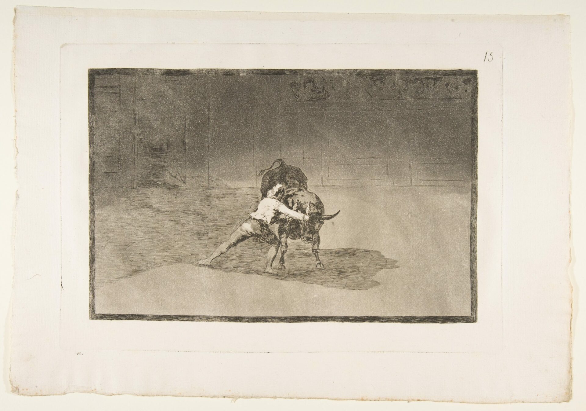 Plate 15 from the ‘Tauromaquia’: The famous Martincho places the banderillas playing the bull with the movement of his body.