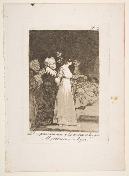 Plate 2 from ‘Los Caprichos’ : They say yes and give their hand to the first comer (El si pronuncian y la mano alargen al primero que llega)