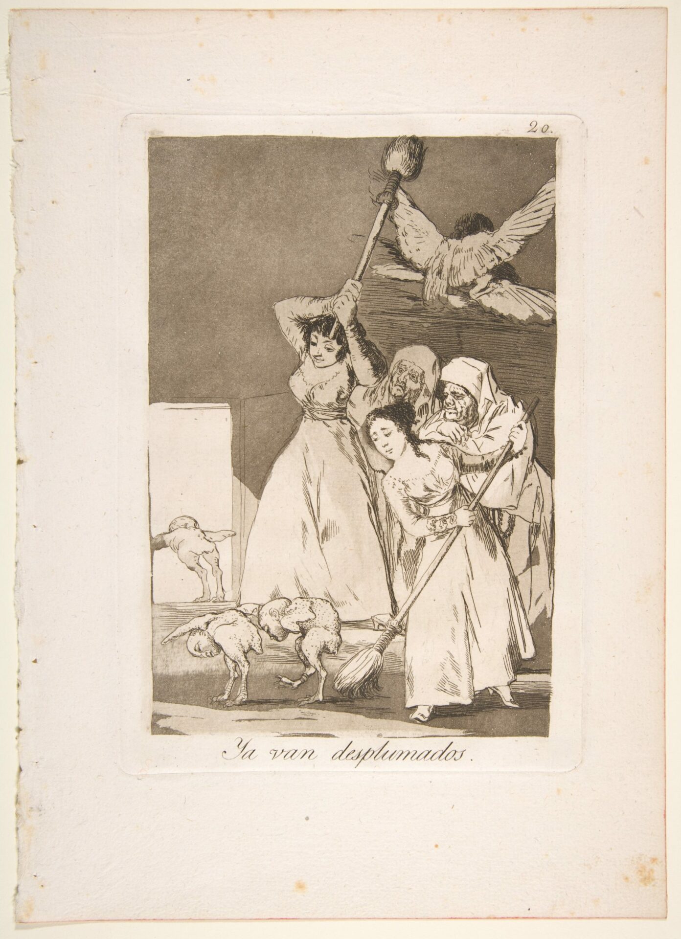 Plate 20 from ‘Los Caprichos’: There they go plucked (i.e. fleeced) (Ya van desplumados.)