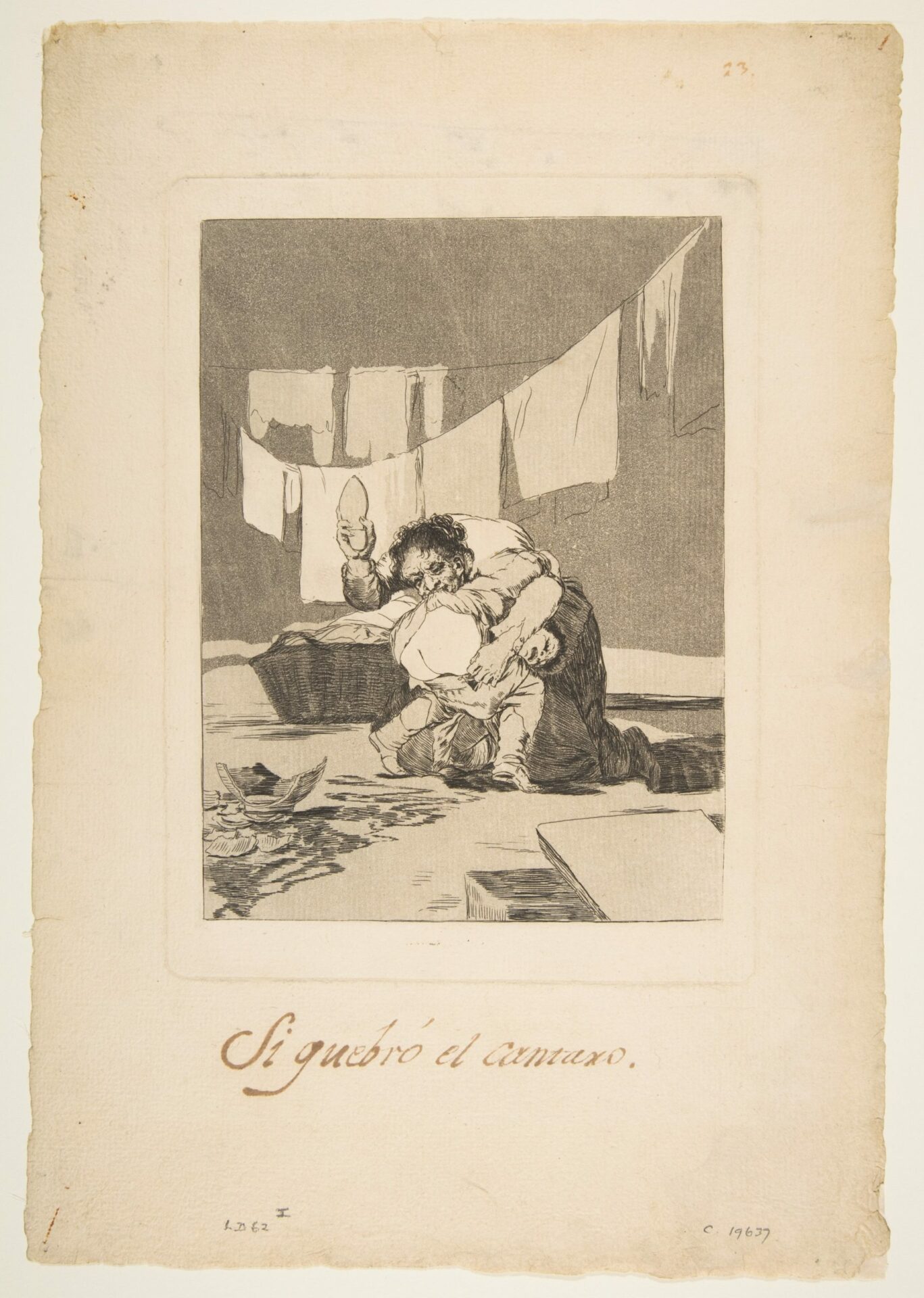 Plate 25 from ‘Los Caprichos’: If he broke the pot (Si quebró el cantaro.)