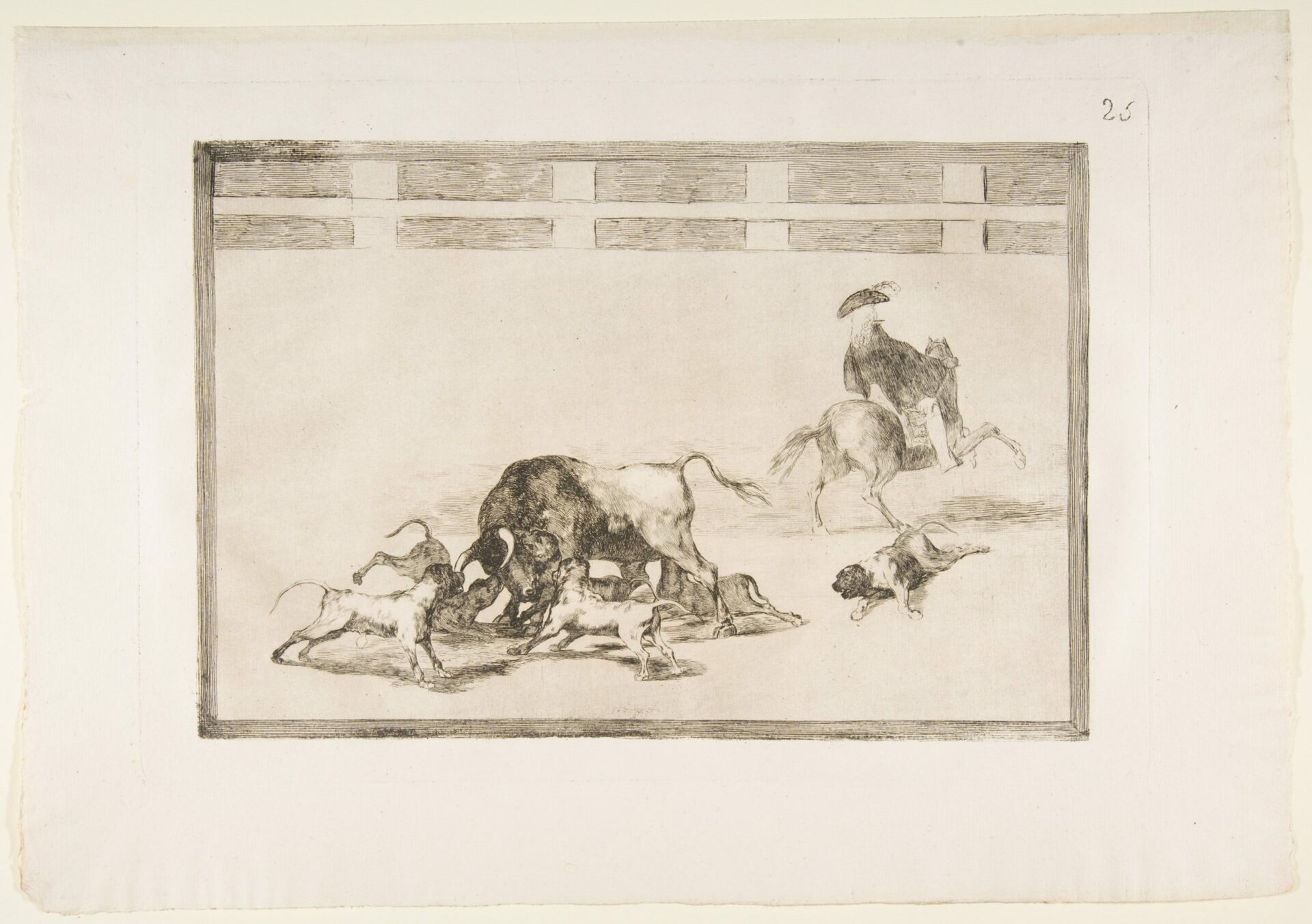 Plate 25 from the ‘Tauromaquia’: They loose dogs on the bull