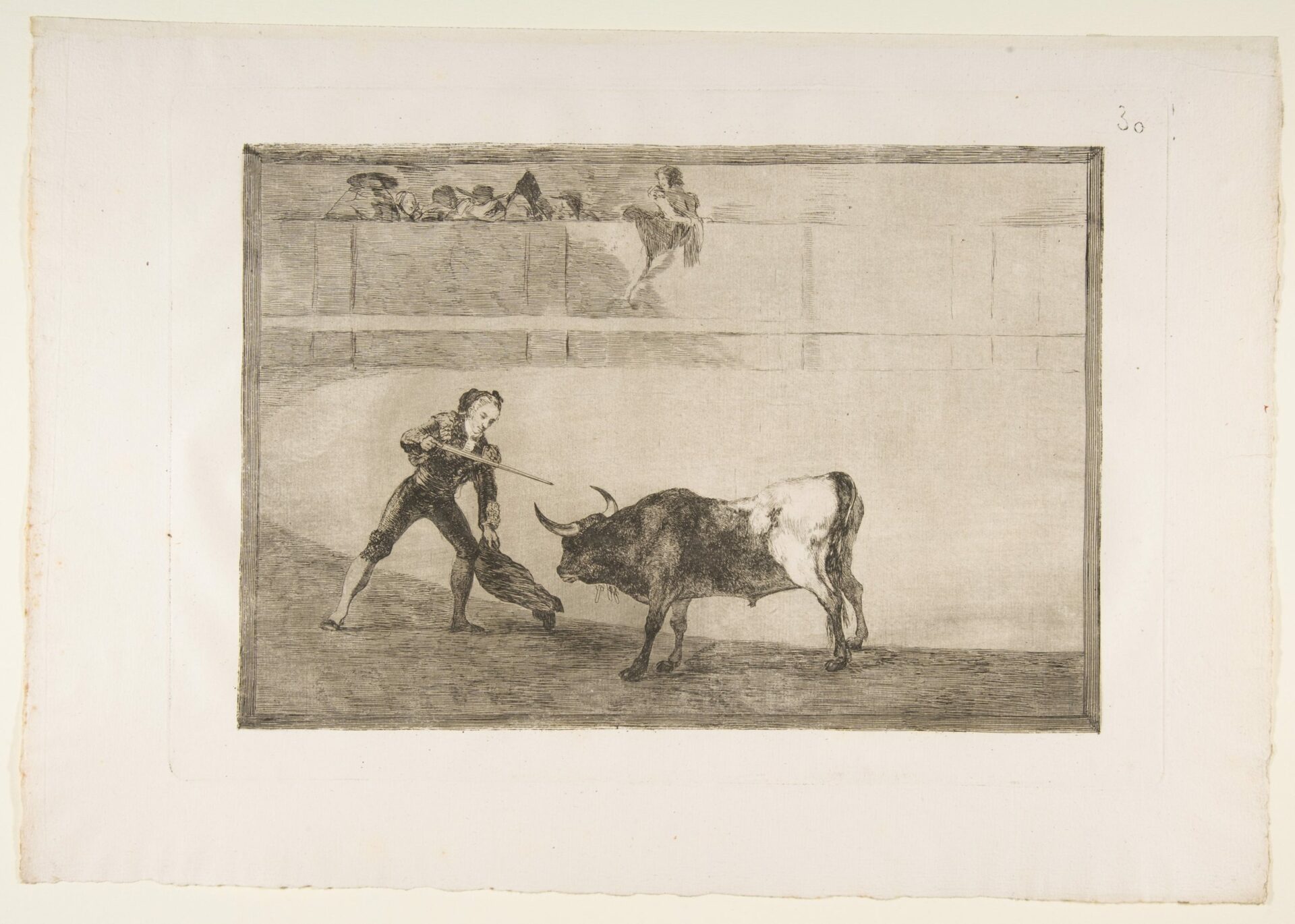 Plate 30 of the ‘Tauromaquia’: Pedro Romero killing the halted bull.