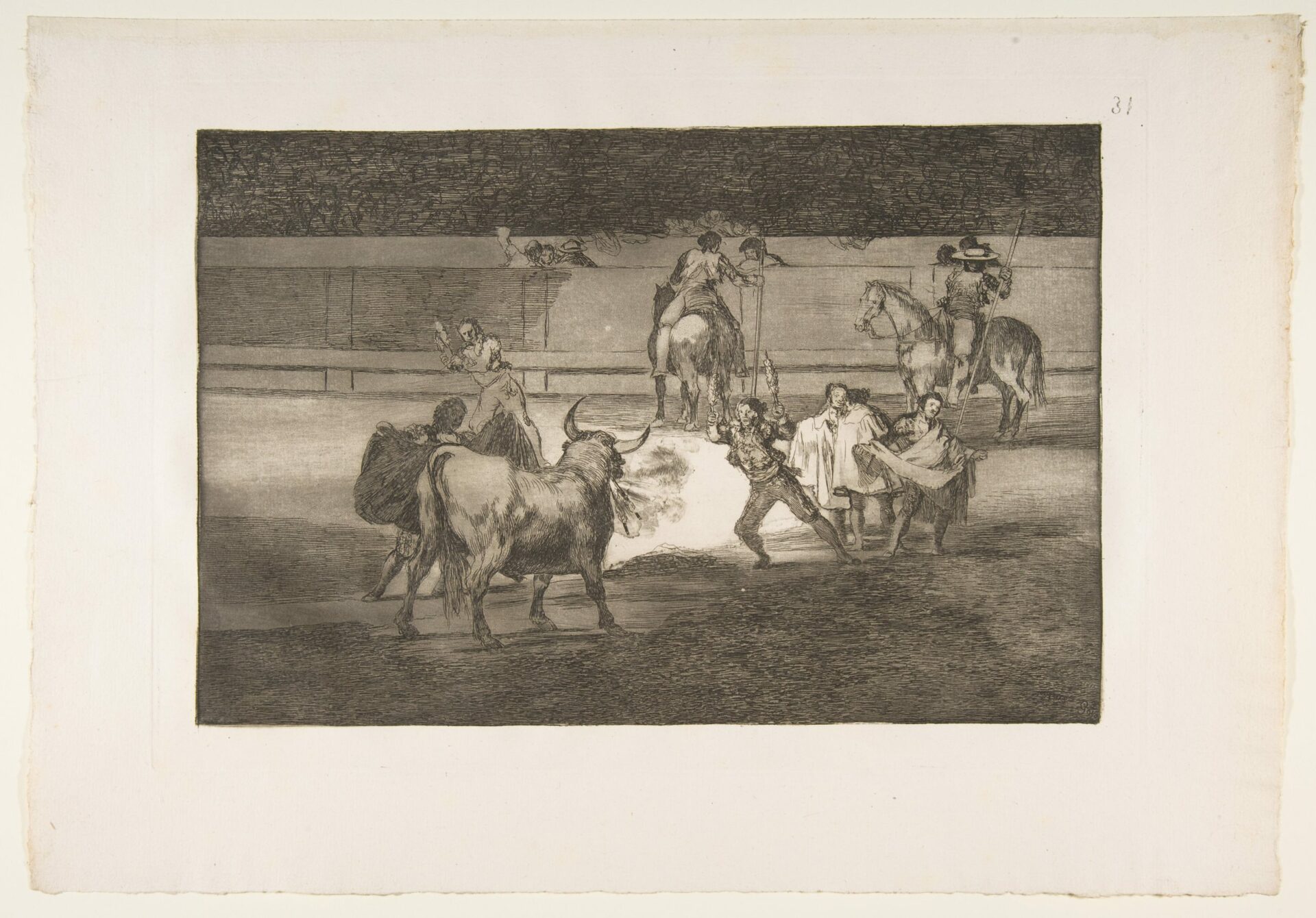 Plate 31 of the ‘Tauromaquia’: Banderillas with firecrackers.