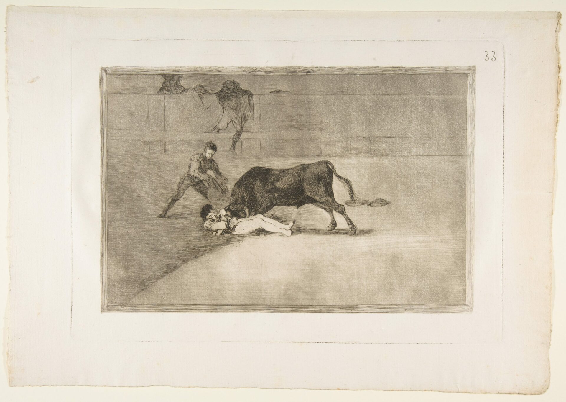 Plate 33 from the ‘Tauromaquia’: The unlucky death of Pepe Illo in the ring at Madrid.