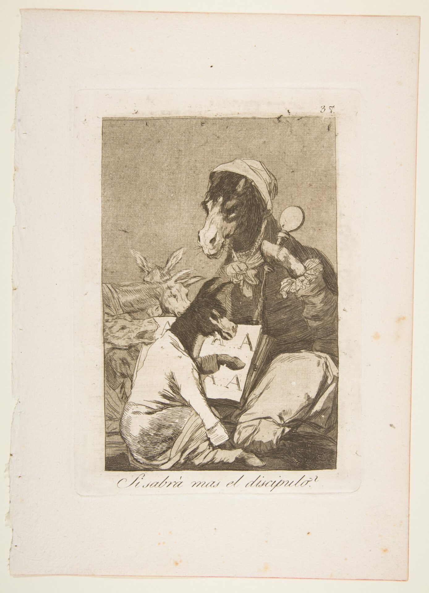 Plate 37 from ‘Los Caprichos’: Might not the pupil know more? (Si Sabrá mas el discipulo?)