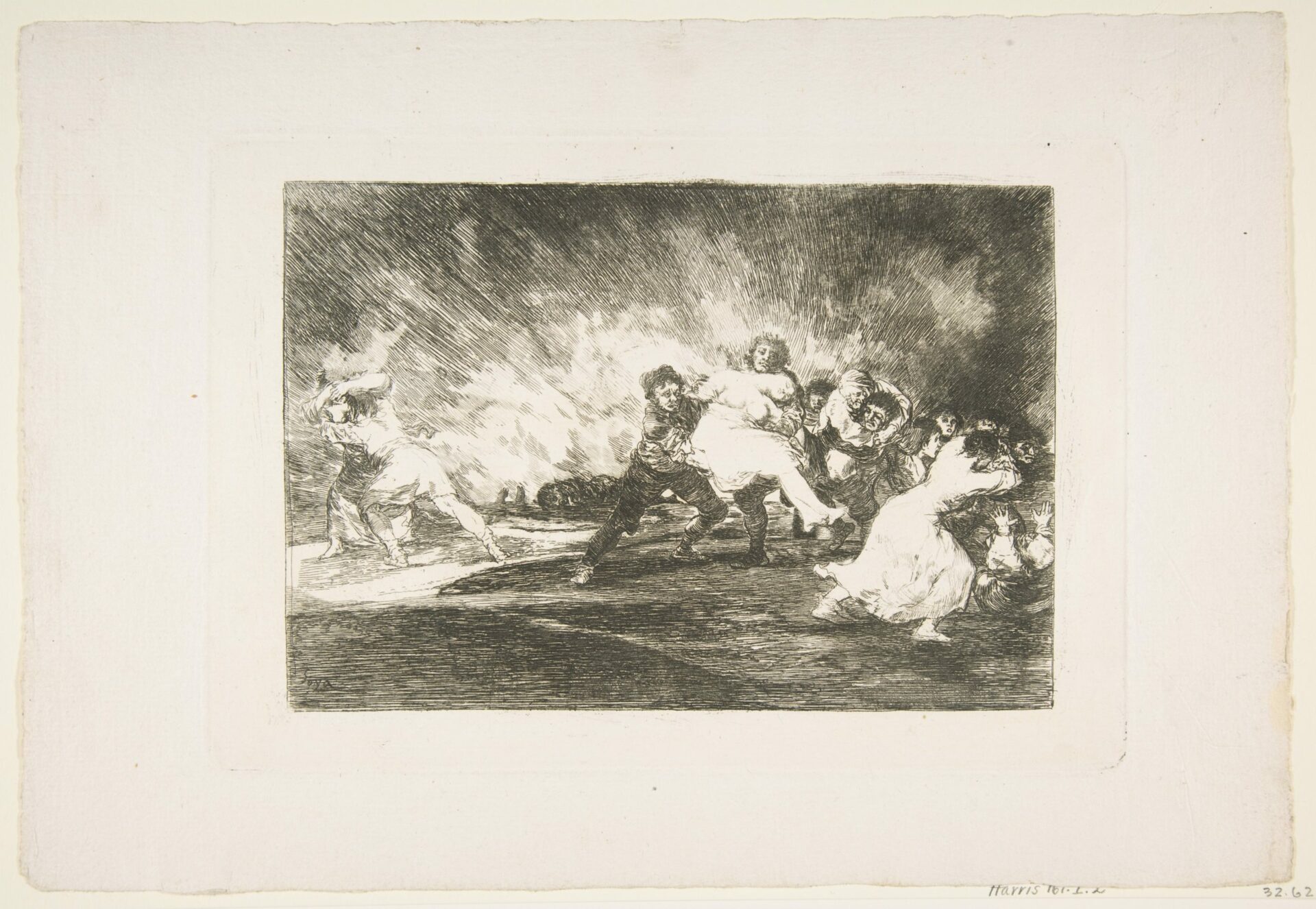Plate 41 from ‘The Disasters of War’ (Los Desastres de La Guerra): ‘They escape through the flames.’ (Escapan entre las llamas.)