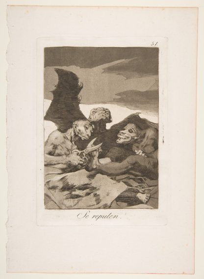 Plate 51 from ‘Los Caprichos’: They spruce themselves up (Se repulen.)