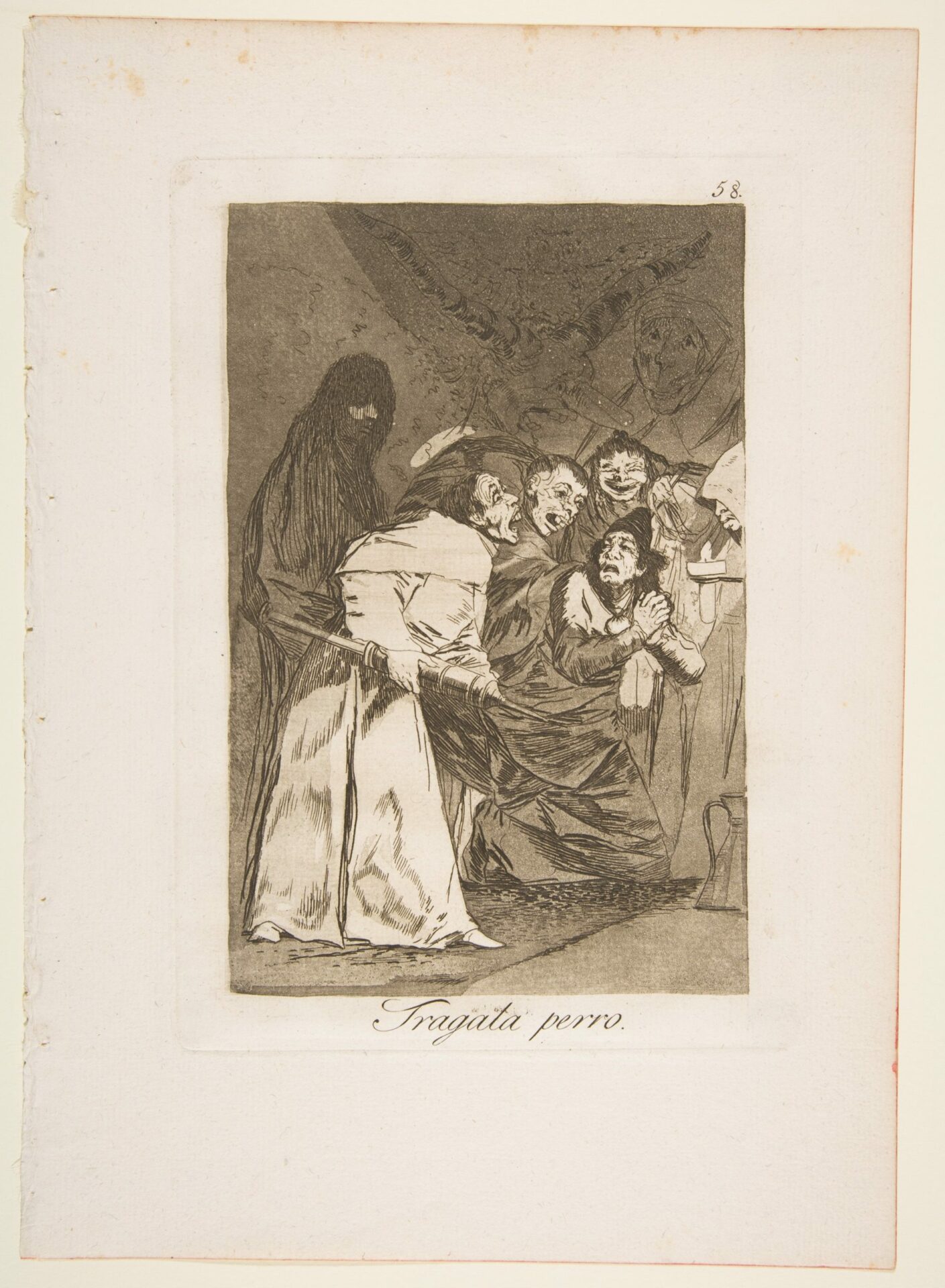 Plate 58 from ‘Los Caprichos’: Swallow it, dog (Tragala perro.)