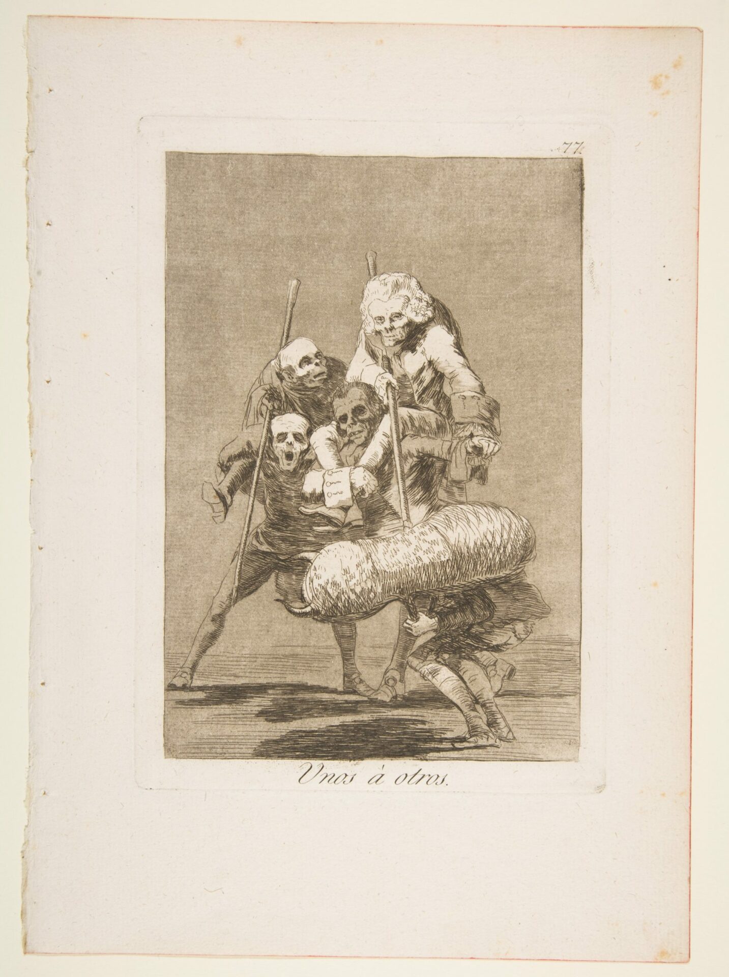 Plate 77 from ‘Los Caprichos’: What one does to another (Unos á otros.)