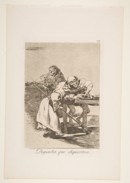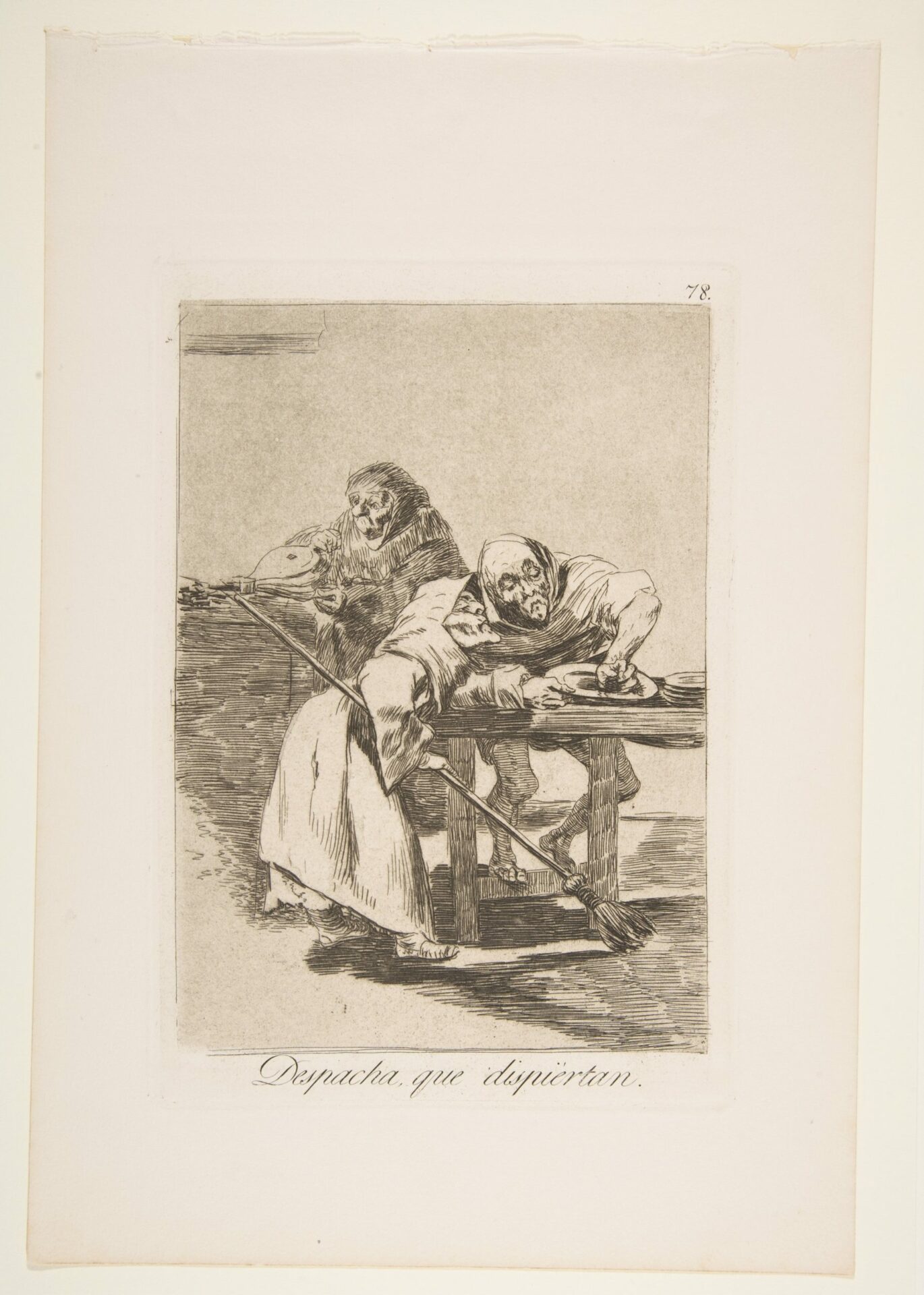 Plate 78 from ‘Los Caprichos’: Be quick, they are waking up (Despacha, que dispiertan.)