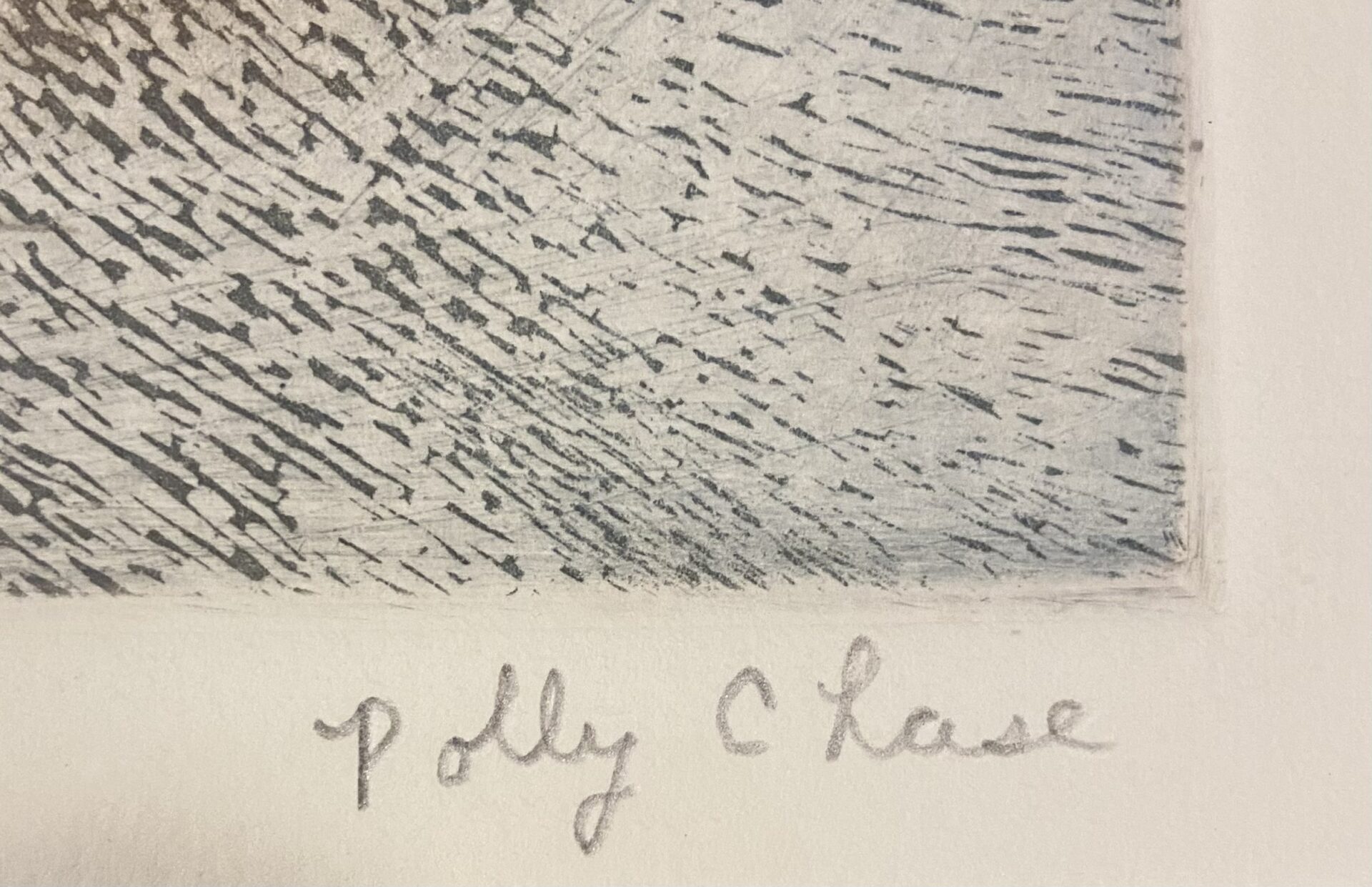 Polly Chase was born in what was once rural Long Island, New York. She studied art at Hofstra University and Stonybrook University on Long Island and at the Art Student League in Manhattan, New York. Her strong interests were in life illustration, anatomy, and art history. Her art education is a continuing process as she absorbs from nature, traveling our country and from the constant research in our museums of art and natural history. I think the best way to describe Polly’s work would be to watch an art lover see her work for the first time. They look at the work and then are immediately drawn in as if by a strong magnet. They find the work intriguing for design and then the eye is attracted by the detail of the subject and sensitivity of its rendition. The feeling of being pulled in is accomplished by having a wealth of interlacing line and detail that never seems to end. You could almost describe it as artistic vertigo. Most of Polly Chase’s expression in art is linear in rendition which has found full fruition in lithography and intaglio. She is a master at both graphic mediums, but she is always looking to expand her techniques. Her subject matter covers a wide range from nature scenes, animals and birds, to nostalgic city scenes.