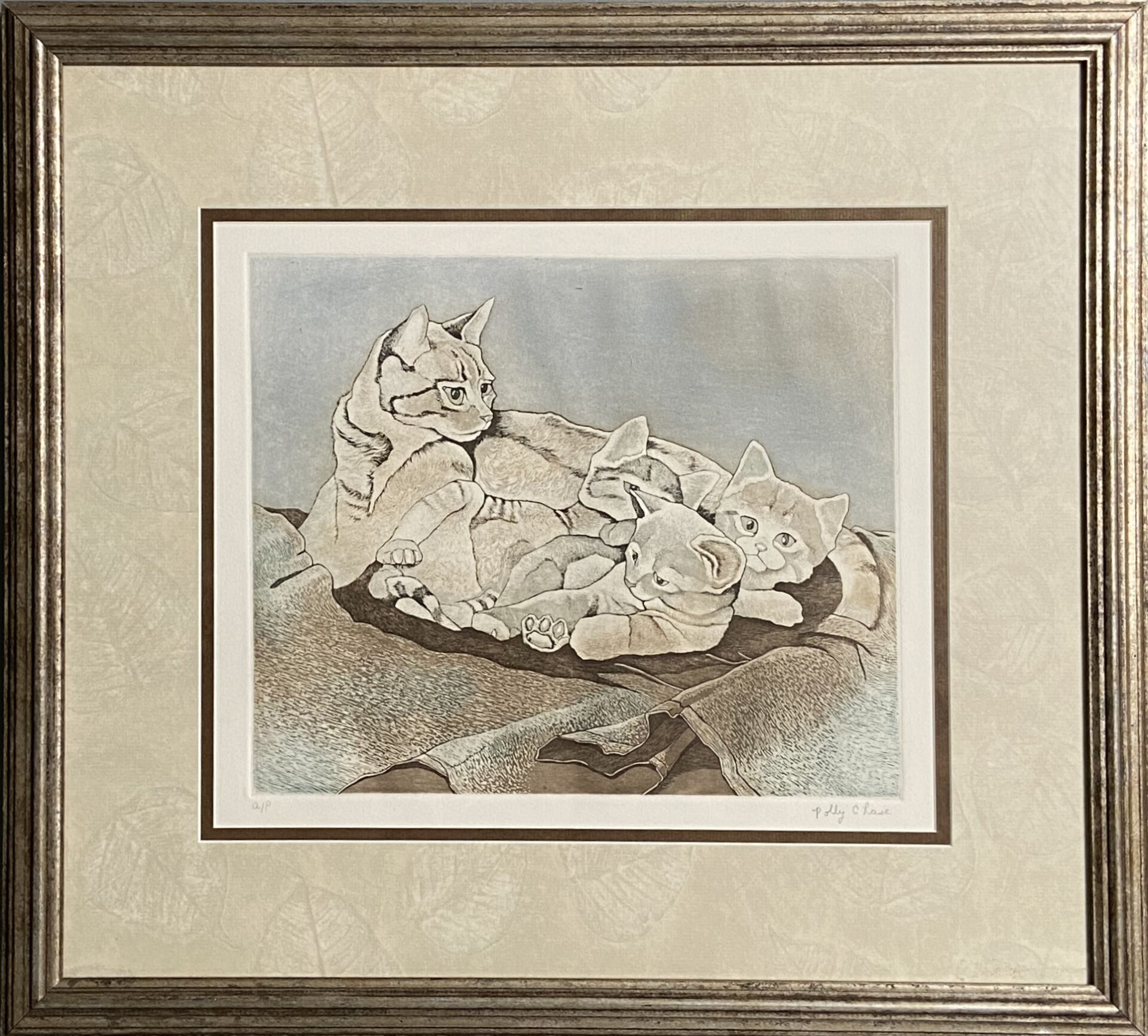 Polly Chase – Rare Signed Artist Proof Etching – Cats.
