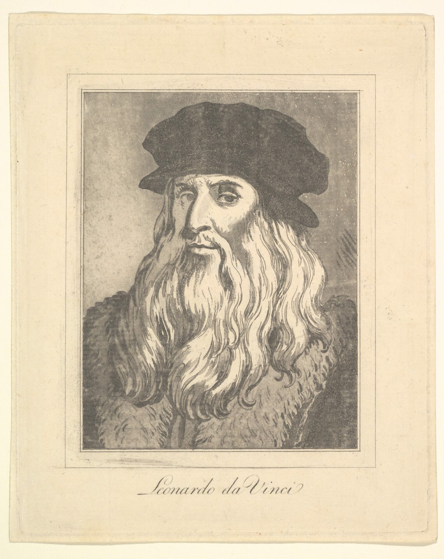 Portrait of Leonardo da Vinci (from Characaturas by Leonardo da Vinci, from Drawings by Wincelslaus Hollar, out of the Portland Museum)