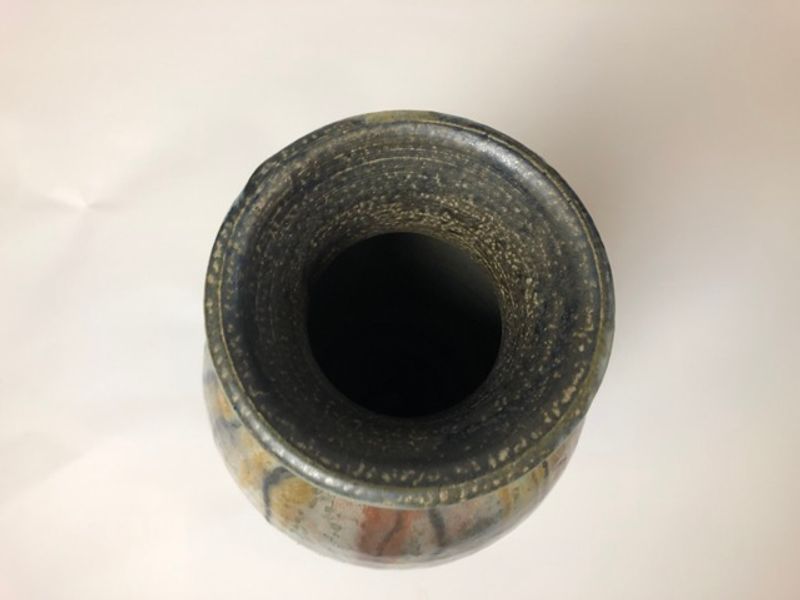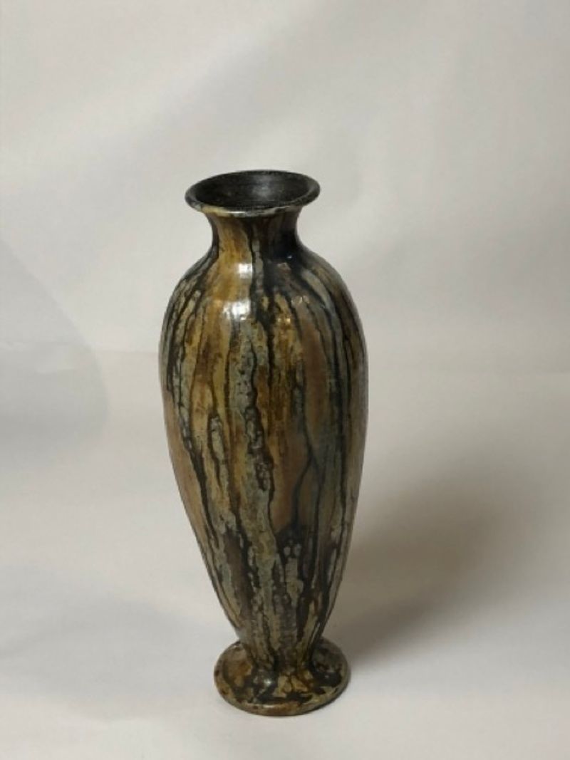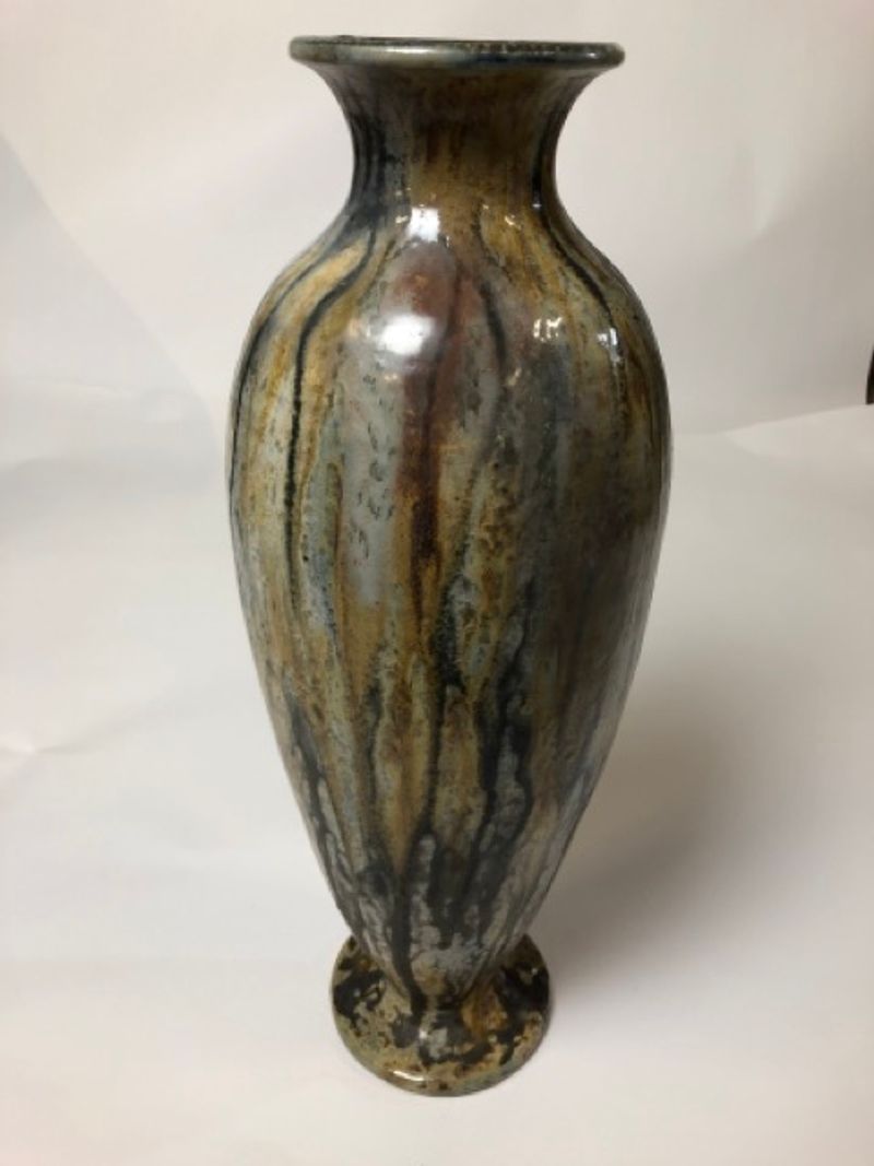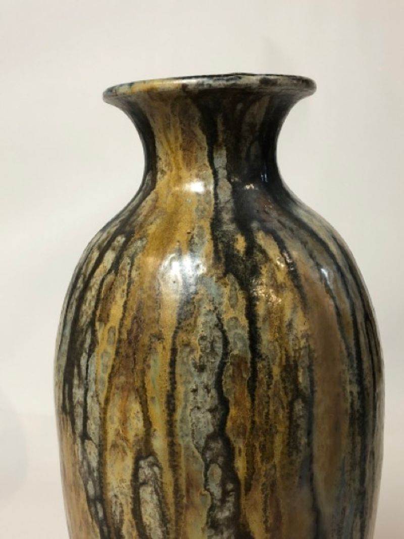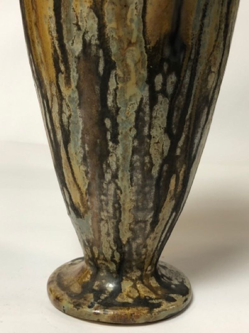 Glazed pottery vase by renowned Belgian ceramic artist Roger Guèrin, circa 1930s. Drip wash glaze . Incised signature on bottom.