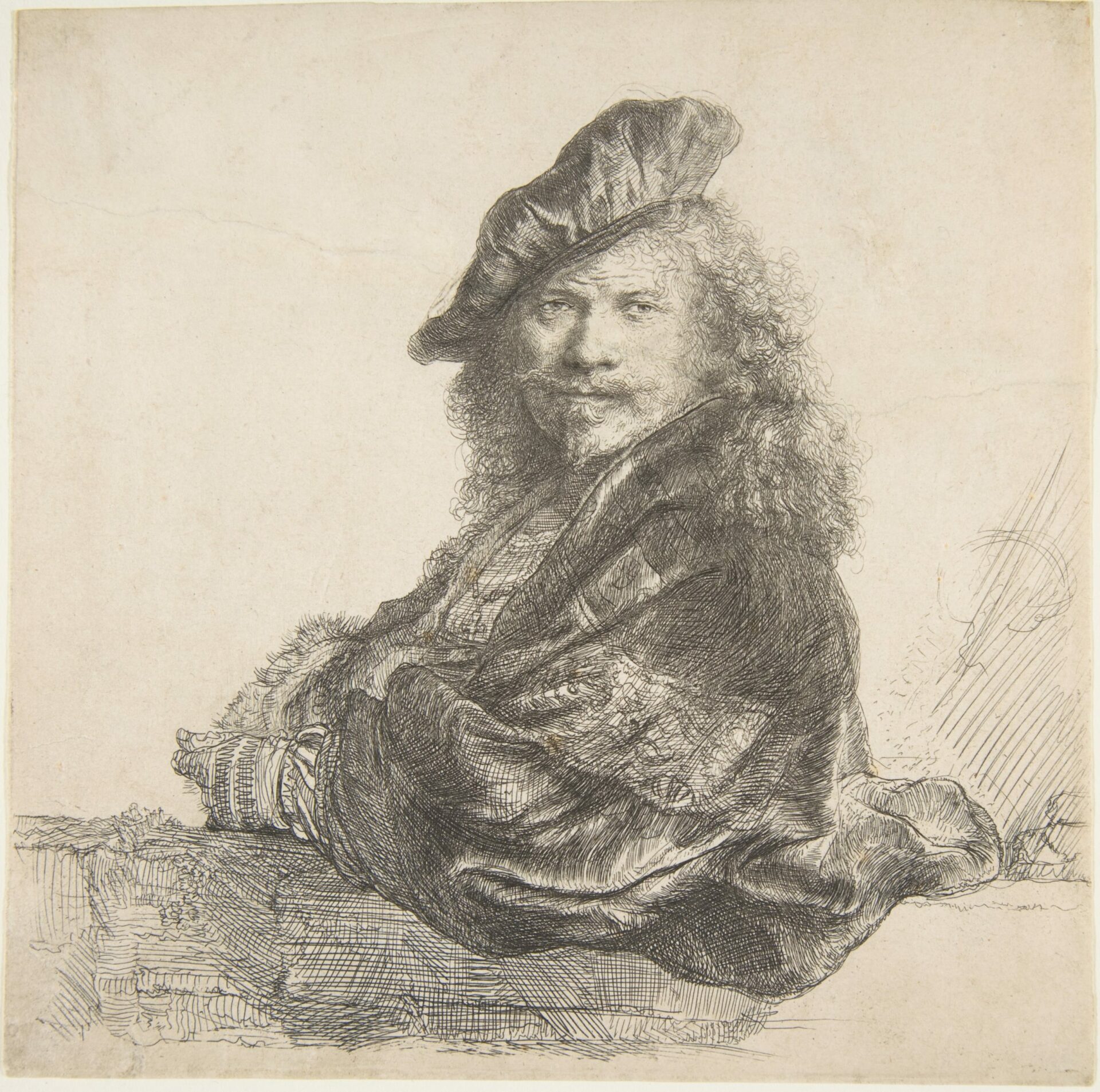 Self-Portrait, Leaning on a Stone Wall