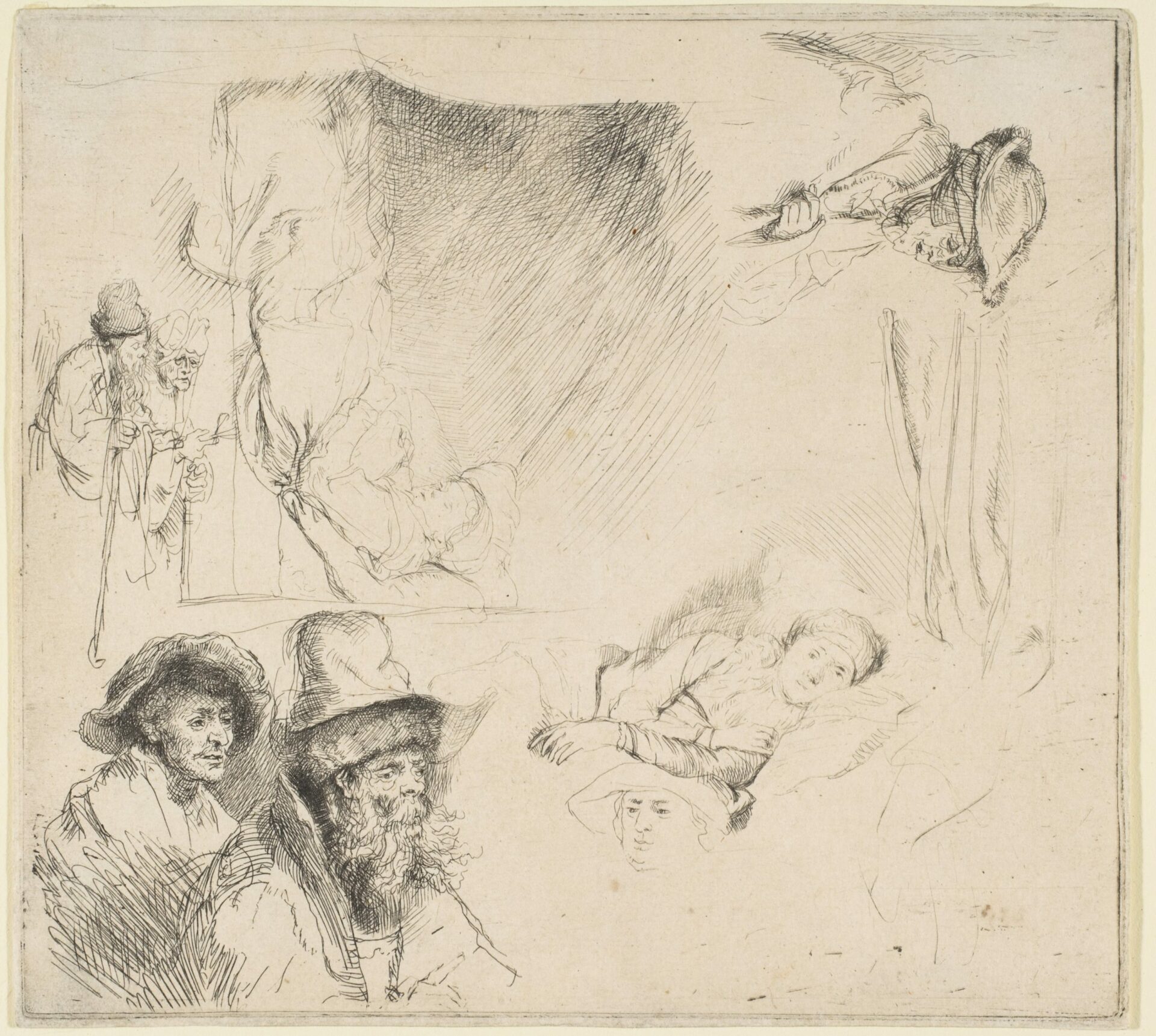 Sheet of Studies with a Woman Lying Ill in Bed, etc.