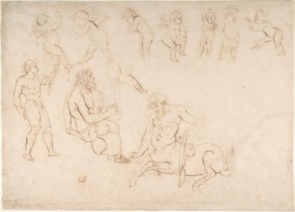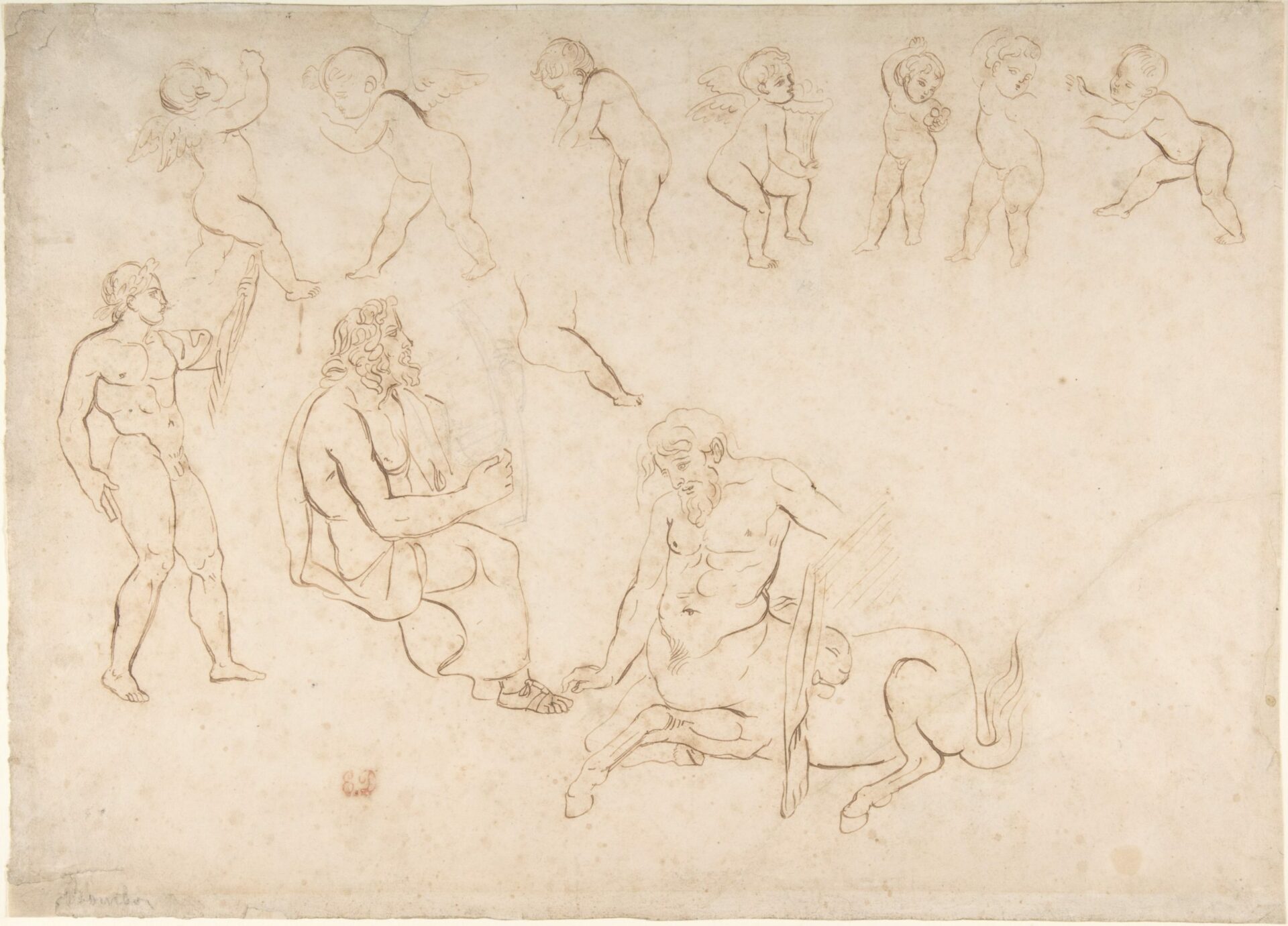 Studies for the decoration of the Library, Palais Bourbon, Paris: standing nude athlete; seated man with a lyre; centaur; and seven putti (three with wings)