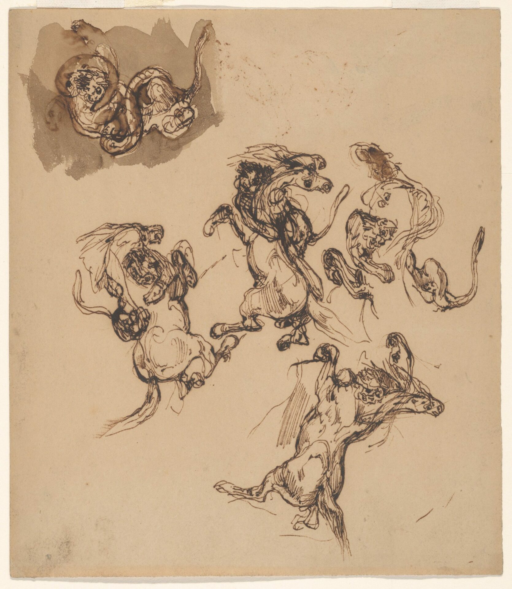 Studies of a Rearing Horse Attacked by a Lion and a Lion Wrestling with a Serpent