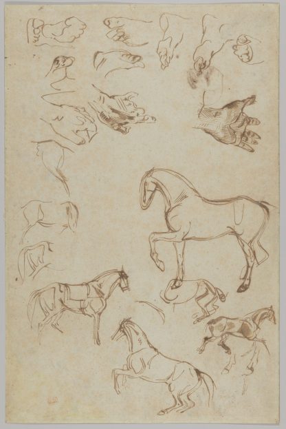Studies of Horses, Hands, and Feet (recto); Studies of Heads and Figures (verso)