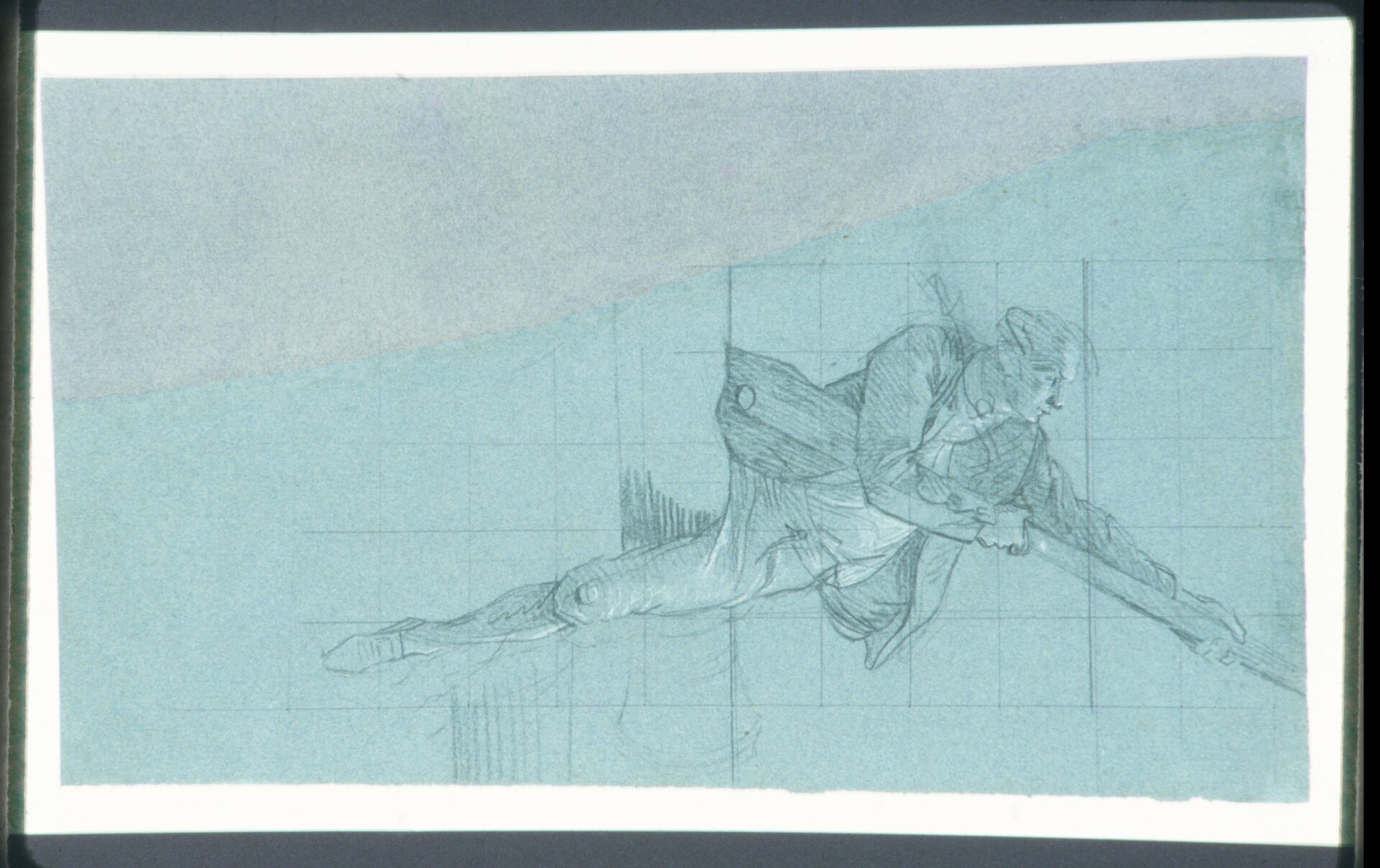 Study for “The Siege of Gibraltar”: Figure Astride Cannon Pulling Down Spanish Colors