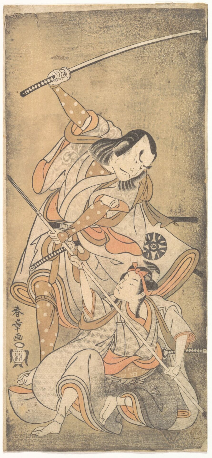 The Actor Nakamura Nakazo with a Sword, Fighting the Actor Ichikawa Raizo II who is Armed with a Lance