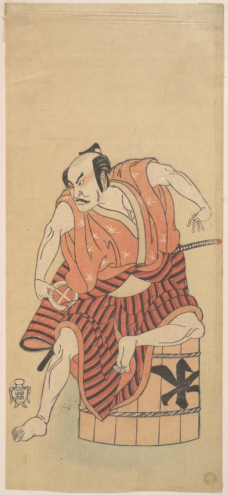 The Third Otani Hiroemon as an Otokodate Seated Upon an Inverted Tub