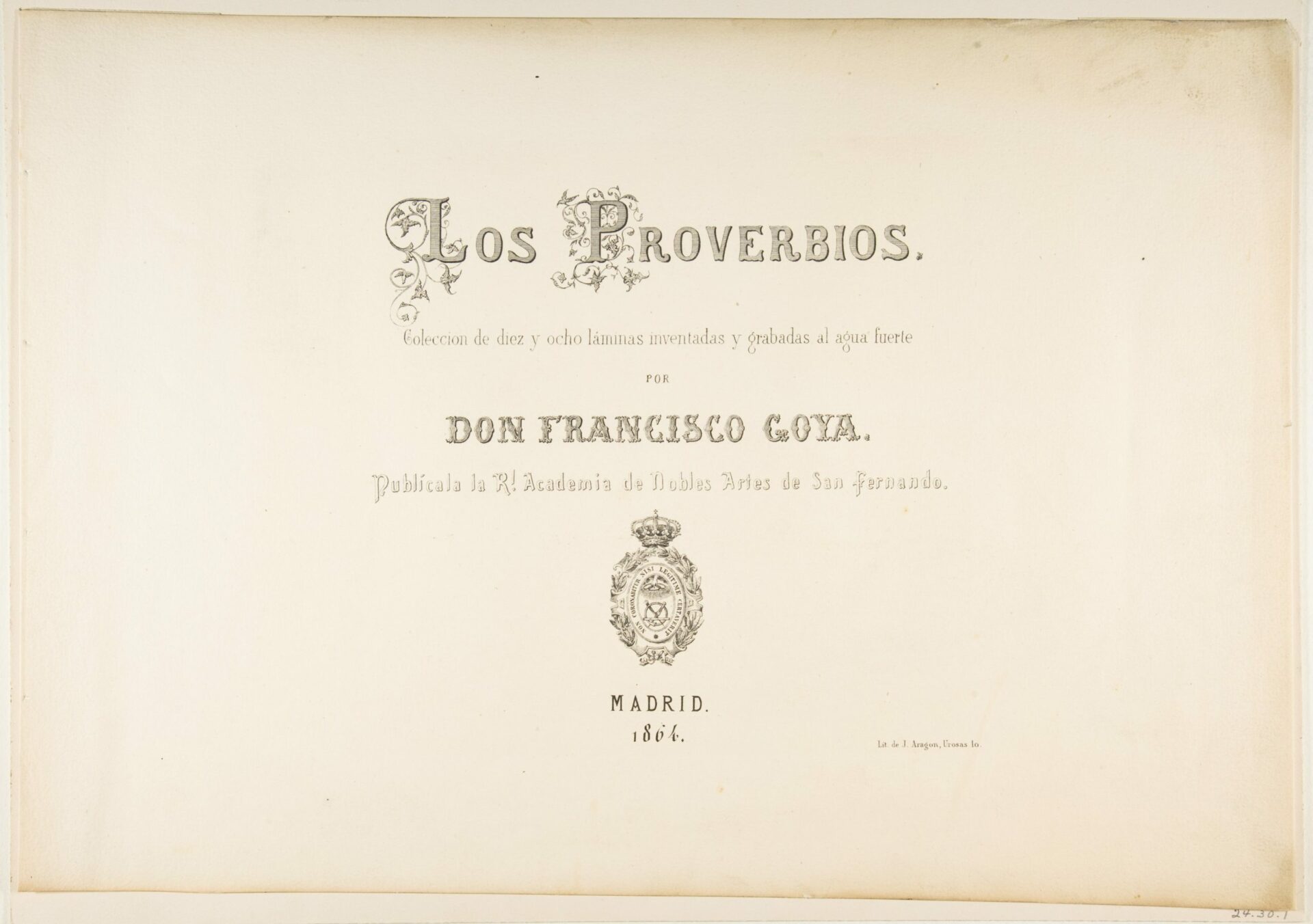 Title page for ‘Los Proverbios’ (Disparates) for the series of prints etched by Goya ca. 1815–19