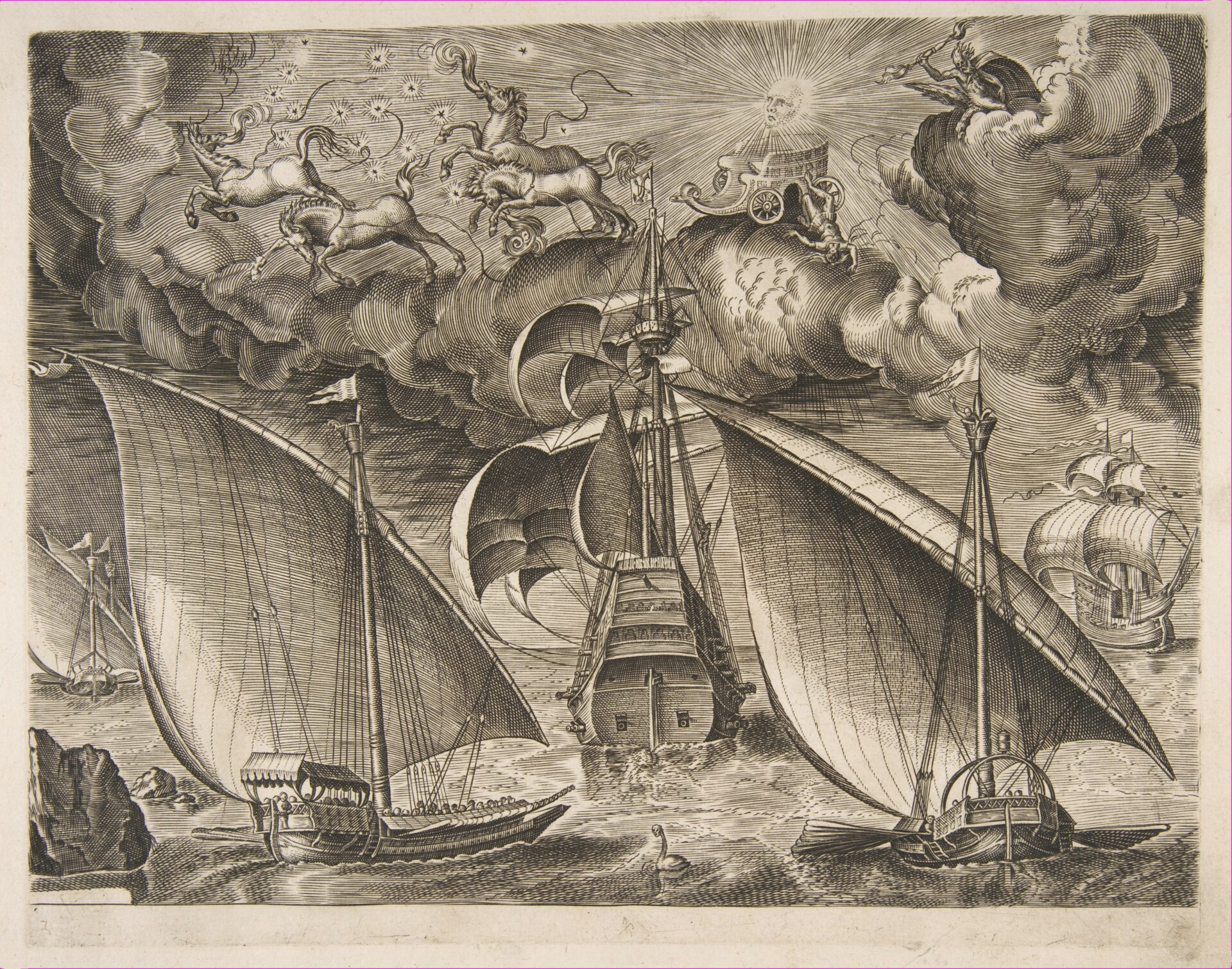 Two Galleys Sailing Behind an Armed Three-Master with Phaeton and Jupiter in the Sky, from the series of Ships