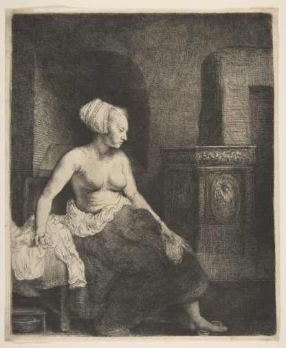 Woman Sitting Half-Dressed beside a Stove